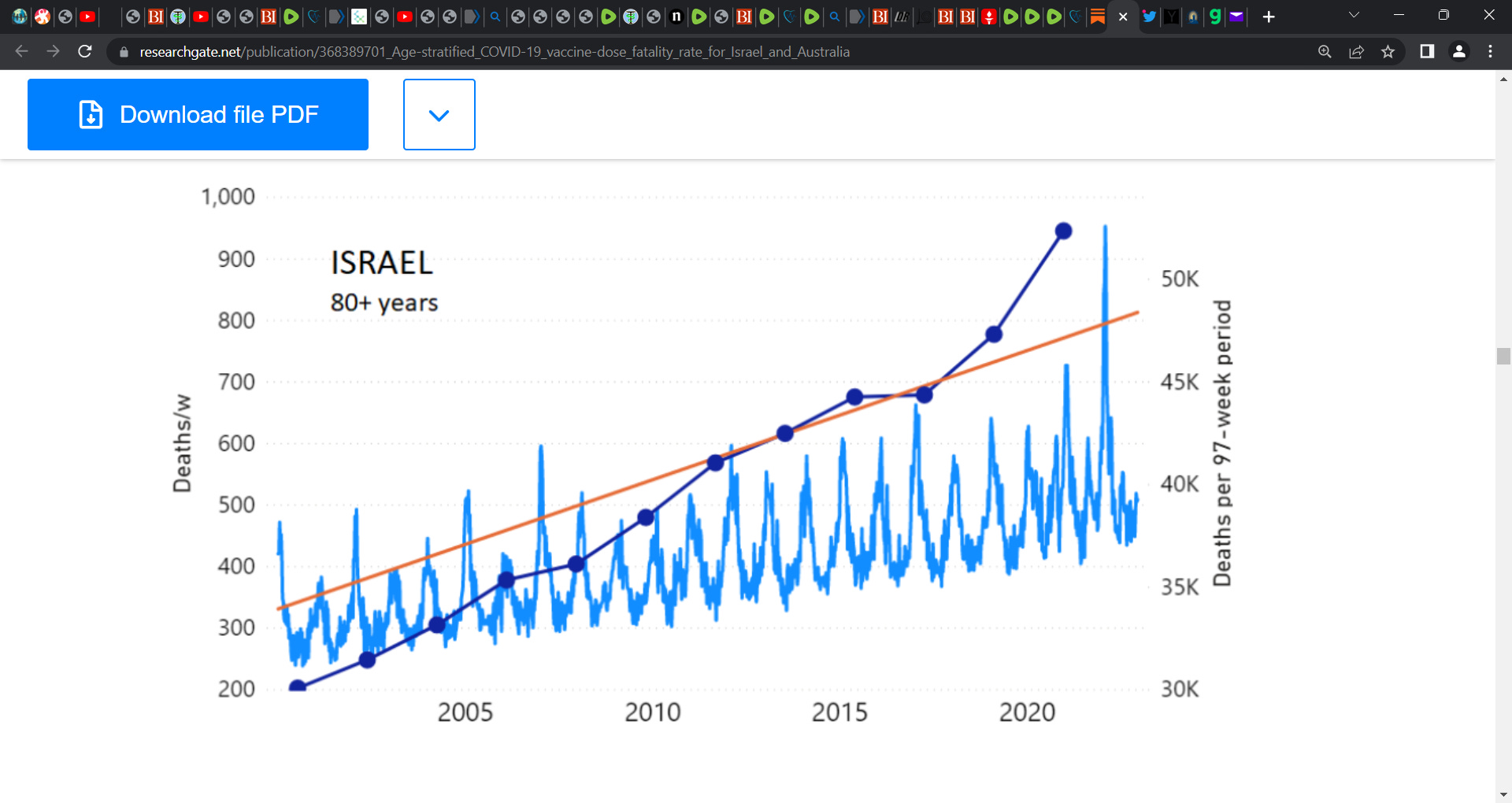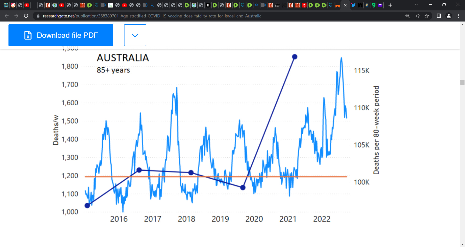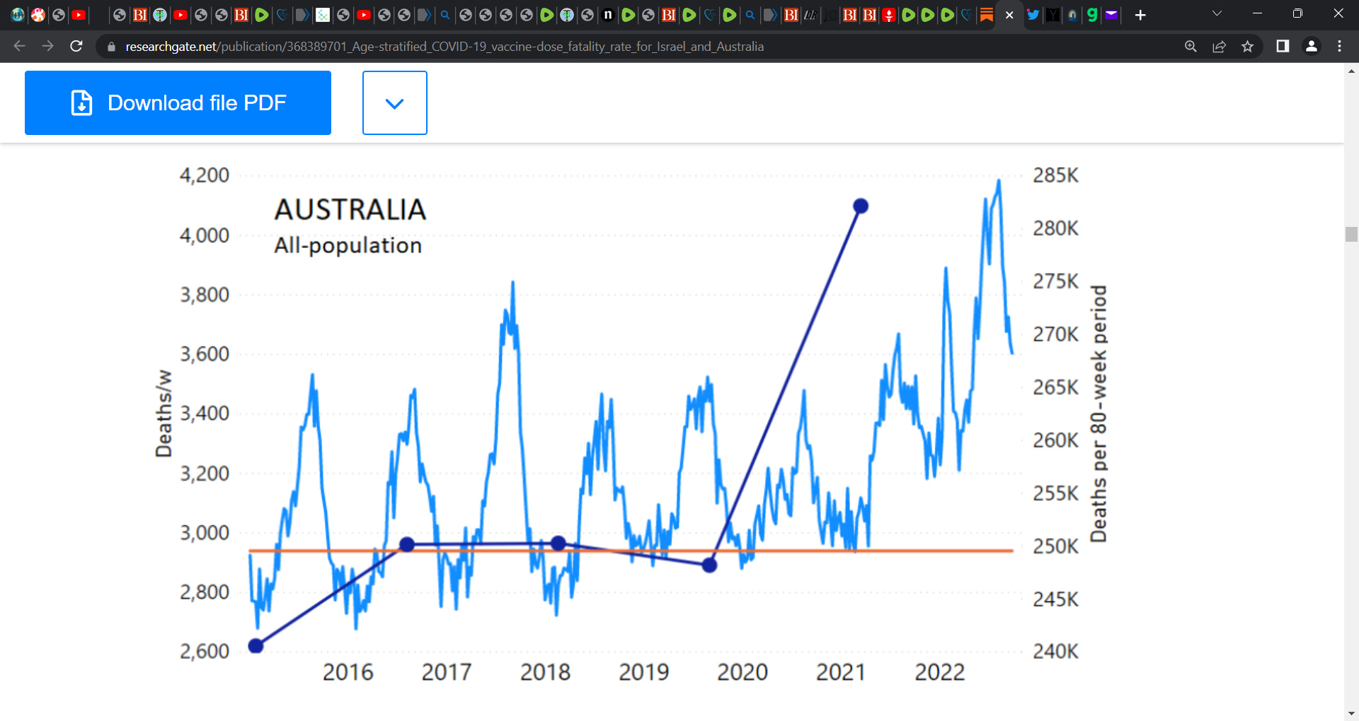 “It is now well established from autopsy studies and adverse effect monitoring that the COVID-19 vaccines can cause death. The vaccine-dose fatality rate (vDFR), which is the ratio of vaccineinduced deaths to vaccine doses delivered in a population, has recently been measured by us to be as large as 1 % in India and when “vaccine equity” campaigns were applied in high-poverty states of the USA, and to be 0.05 % in Australia, with data that is not discriminated by age group. Here, we provide the first empirical evaluations of age-stratified vDFRs, using national all-cause mortality and vaccine rollout data, for Israel and Australia.