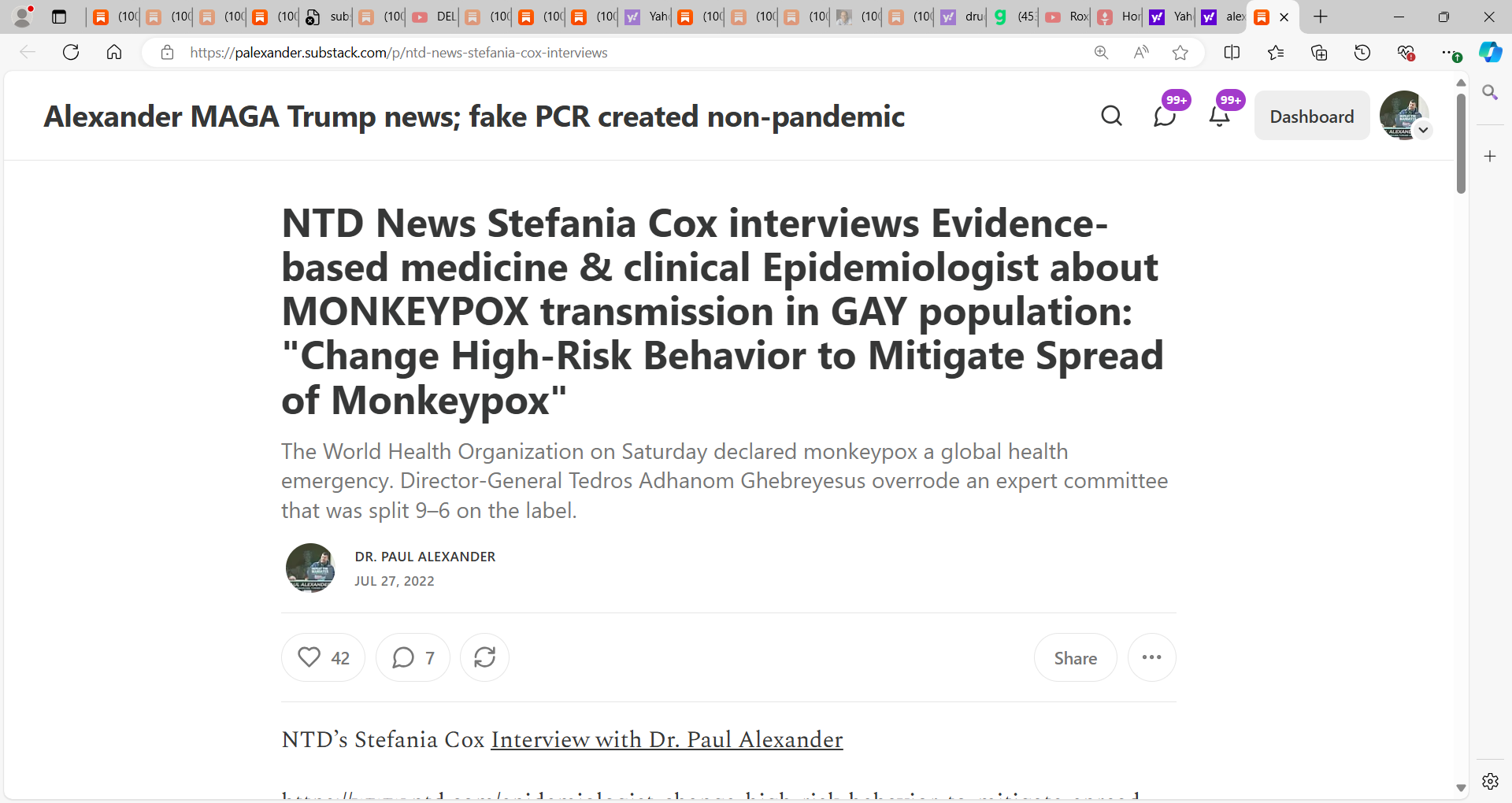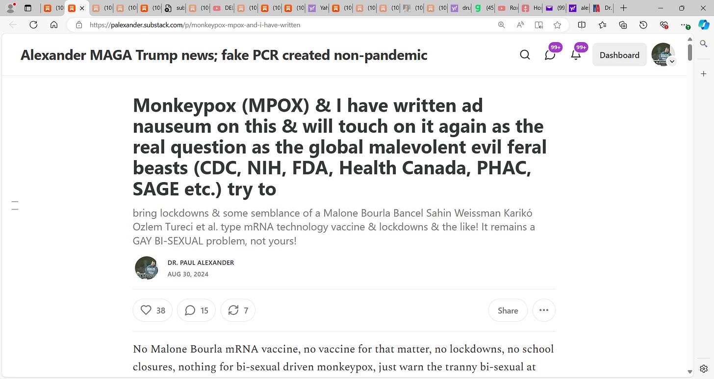 I have published what public health response should be in the GAY, tranny, & BI-SEXUAL communities (below) & McCullough reminds that monkeypox is self-limiting & treated with oral or IV tecovirimat