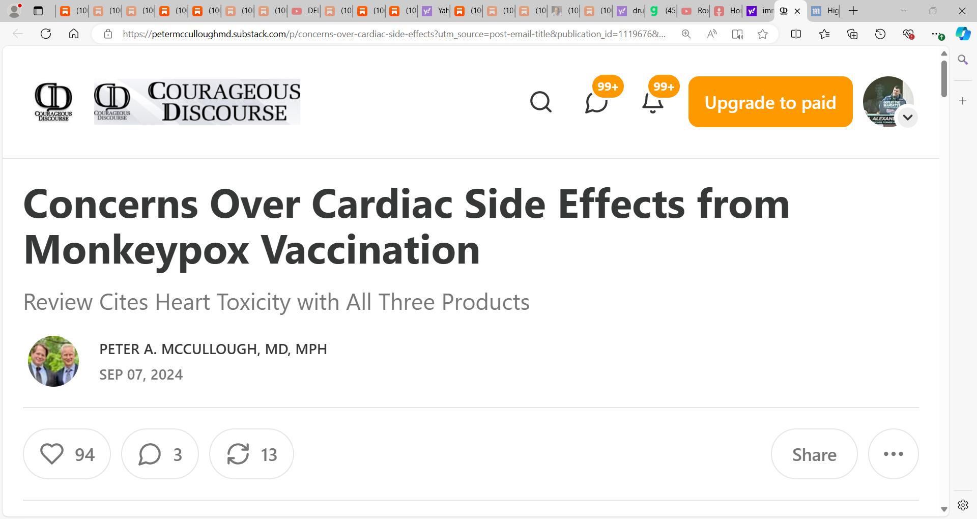 McCullough indicates that this is a dangerous public health response to mass vaccinate and I agree fully. The focus has to be on proper PSAs advising the GAY and bi-sexual community (where monkeypox is the foci and NOT the general low-risk heterosexual populations) how to behave sexually in terms of limited (no orgies or multiple sex partners etc.) or NO skin-to-skin intimacy that could rupture pustules and boils that contain infectious material, as well as acute contact tracing of exposed persons.