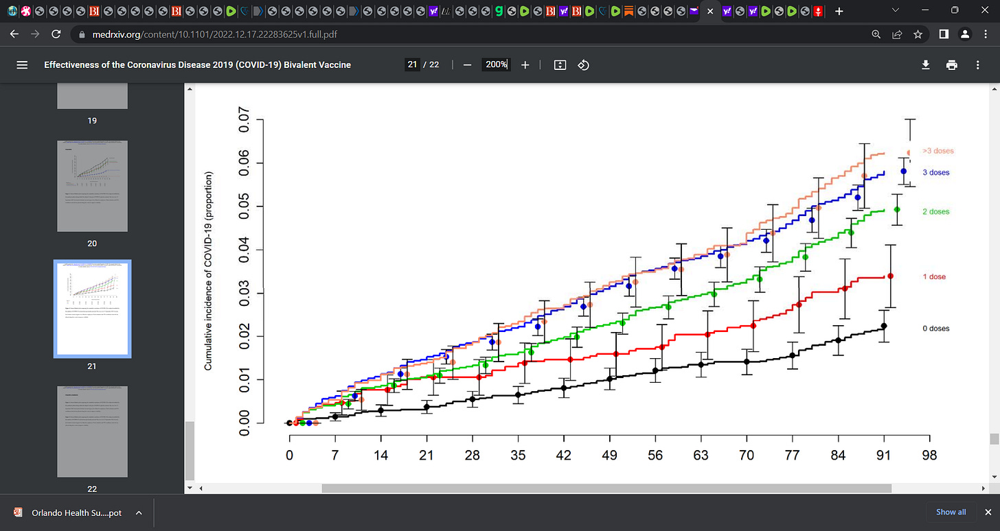 Shrestha et al.'s Cleveland Clinic study showed a CLEAR dose-response in terms of infection, re-infection risk with the '8-mice' BA.4/BA.5 bivalent booster that we know now has FAILED & is harmful!