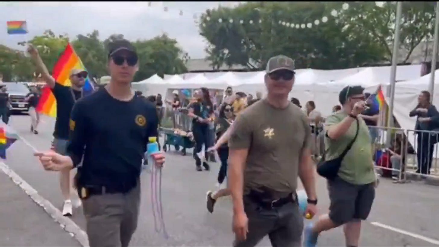 parade they will offer him a job teaching new recruits how to shoot. FBI says don't fuss, they will tend to this illegal & national crime, just bear with them a bit as they get their GAY PRIDE on
