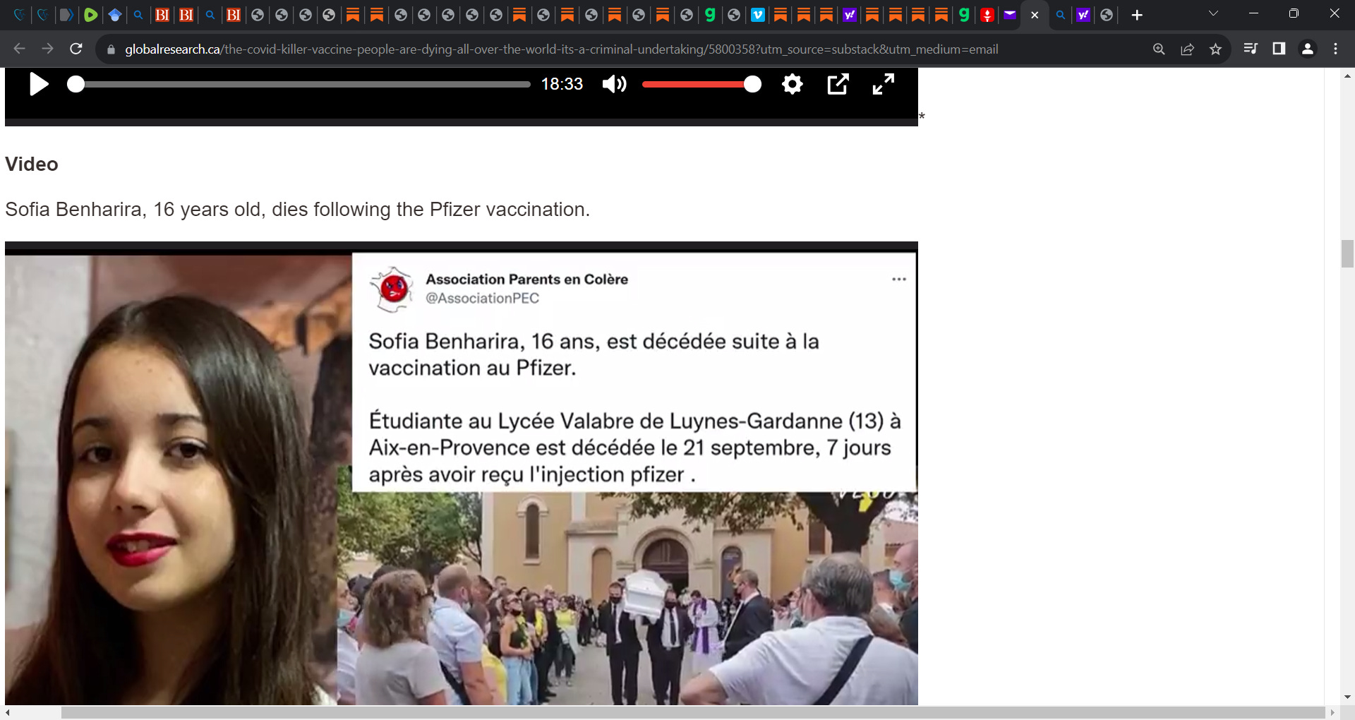 Sofia Benharira, 16 years old, died following the Pfizer mRNA technology gene injection vaccine; how come no one has seriously in proper forums, questioned Weissman, Malone, Kariko, Bourla, Bancel,