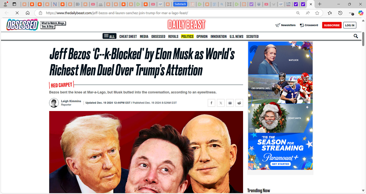 Someone asked me and I pose again, is Elon Musk America's first OLIGARCH alike in Russia/former Soviet Union? A 'good' one, not a killer one;...is Musk overstepping? id Musk crash 47 + Bezos dinner?
