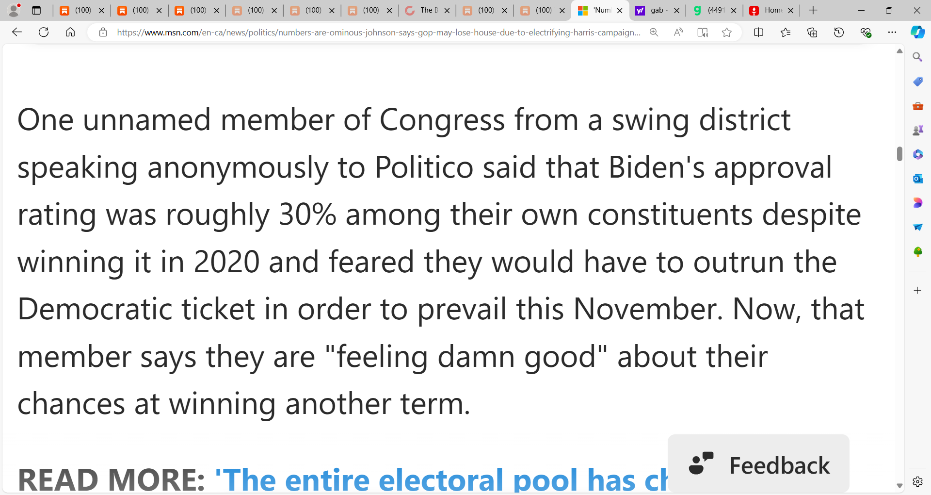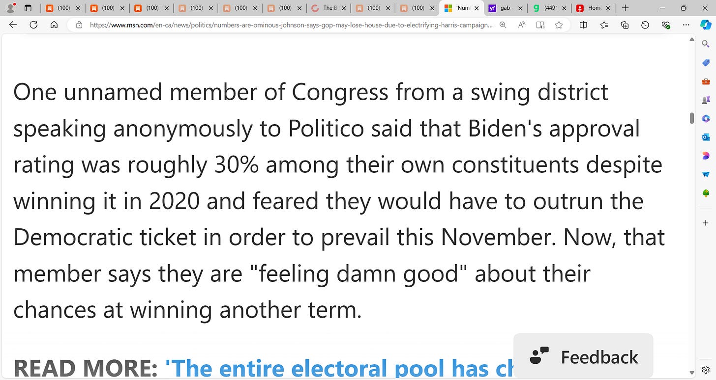 Speaker Mike Johnson whom I consider a traitor & blowhard says this now breaking: "Numbers are ominous': Johnson says GOP may lose congress House due to 'electrifying' Harris campaign"; According to