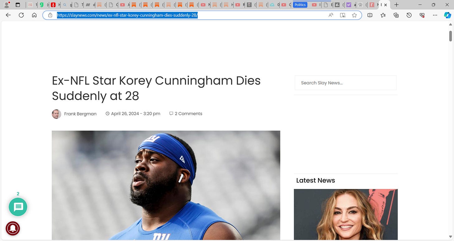 sssshhhh, should we whisper the words "it's the vaccine, stupid, it's the vaccine"! should we tell them? 'Ex-NFL Star Korey Cunningham Dies Suddenly at 28'; should we ask Malone to comment? Or Bourla?
