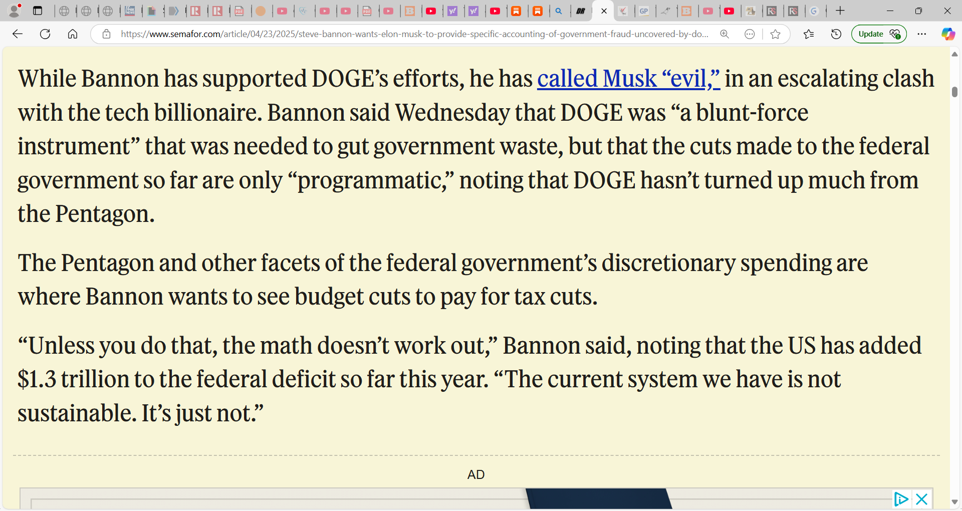 Bannon also said he wants a letter of certification showing that no one has taken any data from the Trump administration or government, to which Semafor’s editor-in-chief Ben Smith asked, “Sounds like you don’t trust [Musk] not to take data?”’