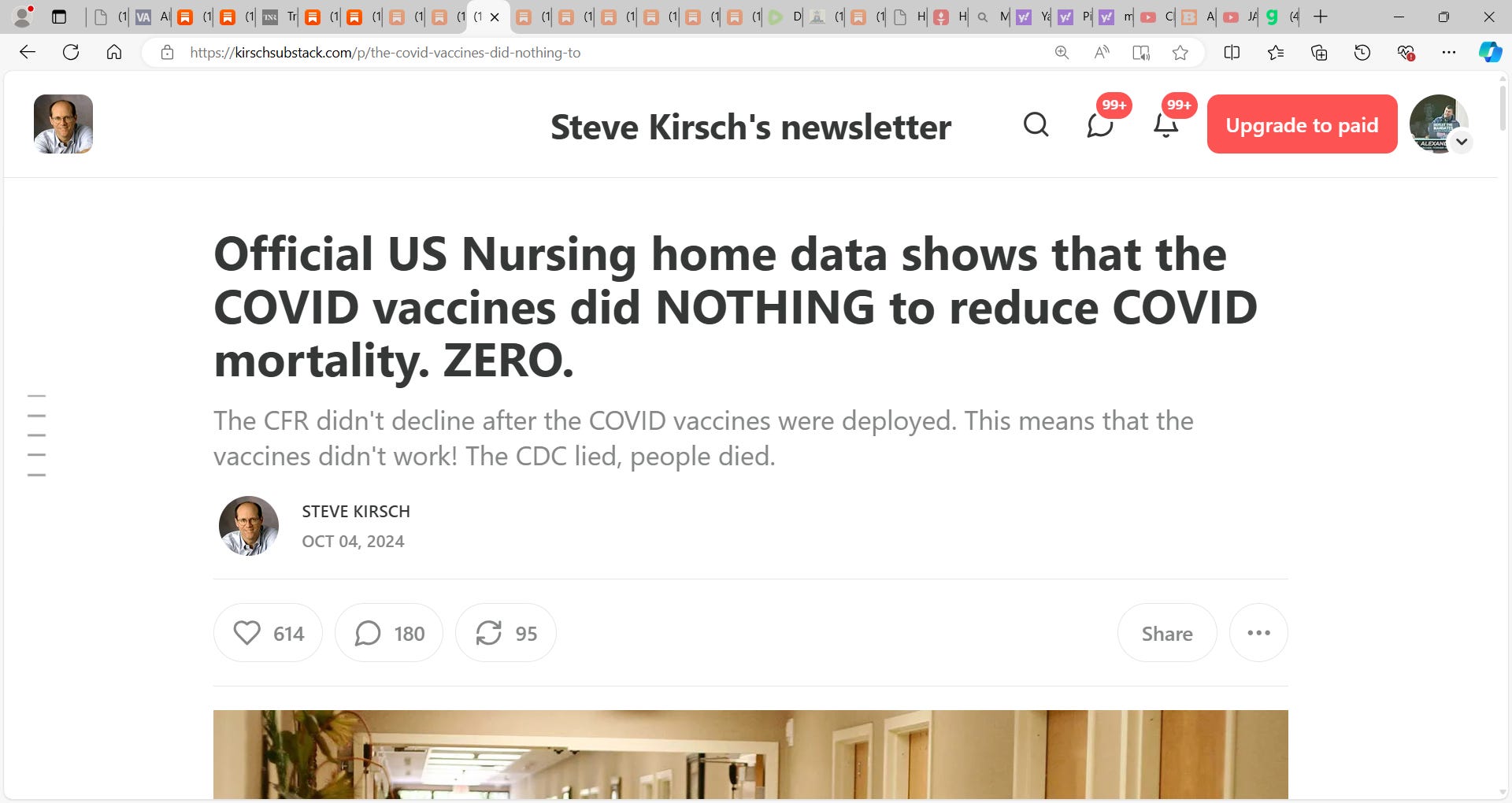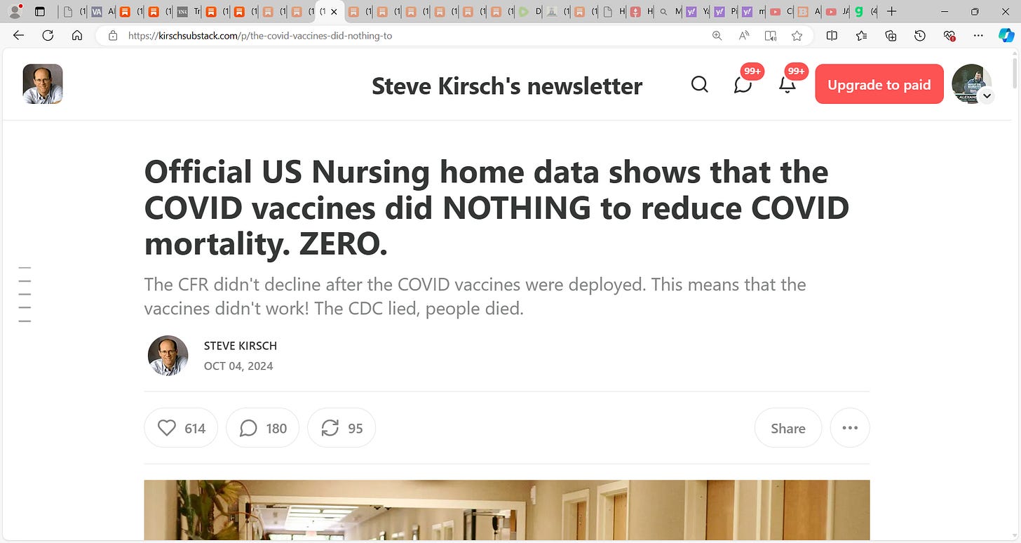 Steve Kirsch's recent substack is 100% on target : 'US Nursing home data shows that the COVID vaccines did NOTHING to reduce COVID mortality. ZERO.' 'The CDC lied. People died. The COVID vaccine had