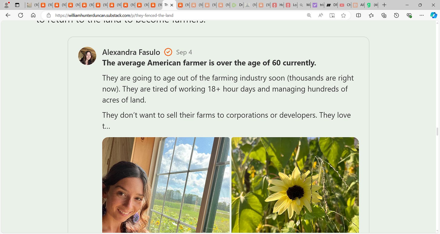 In 1800, 70% of Americans were farming. Today that is less than 3%, and most of those farmers are less farmer than agribusinessmen, working thousands and sometimes tens or even hundreds of thousands of acres. The largest landowners of agricultural land are billionaires, hedge funds and private equity, and pension funds. Lately, Bill Gates has raised eyebrows, becoming the largest single (pardon the pun) owner of agricultural land in America, something like 340,000 acres. It is easier for a Chinese citizen of means to purchase agricultural land in America than it is for most Americans.’