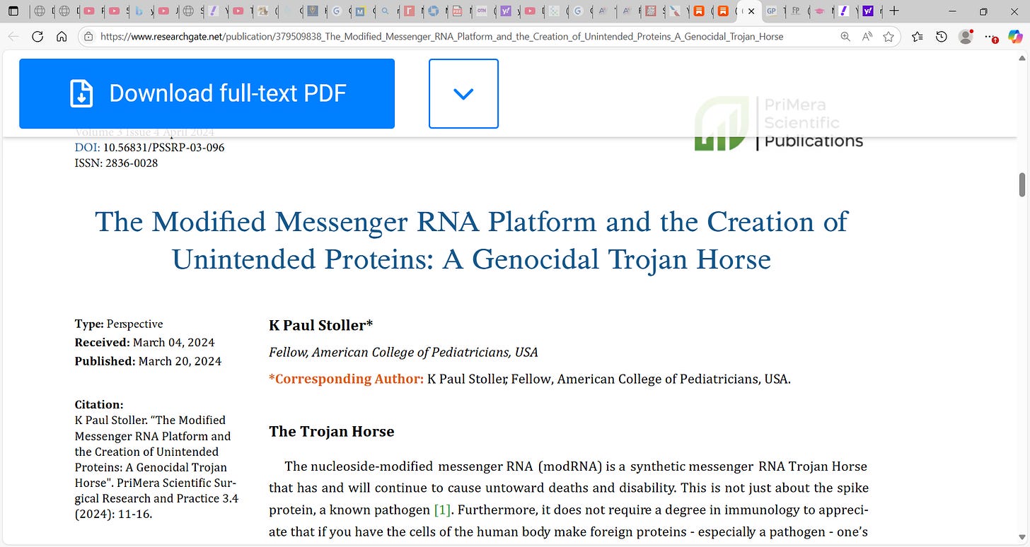 ticket to cancer. "What Stoller is saying (see stack below) is on the money! The Modified Messenger RNA Platform and the Creation of Unintended Proteins: A Genocidal Trojan Horse