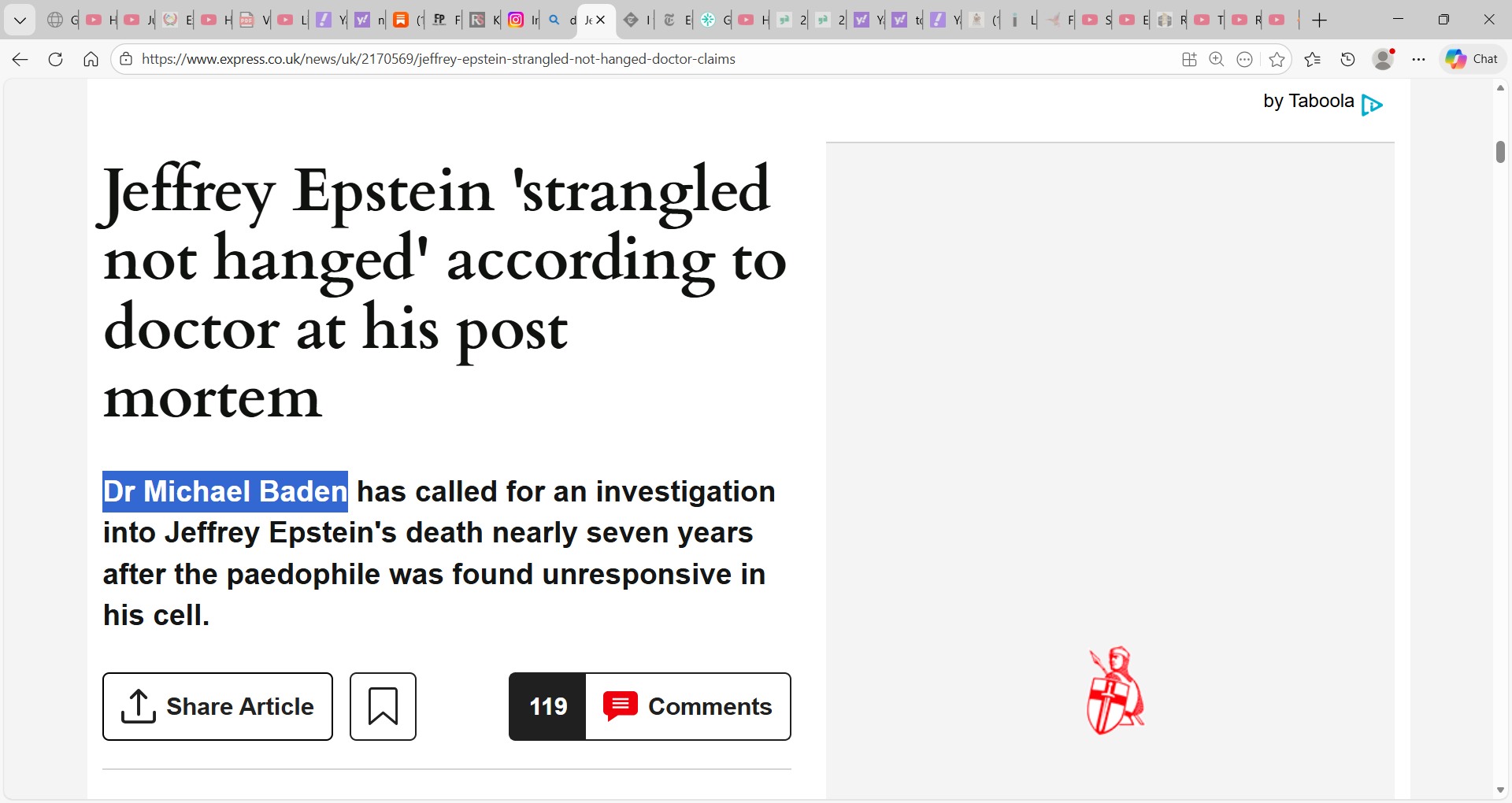 ‘Jeffrey Epstein was strangled and not hanged, according to a doctor present at his post-mortem who has now called for the investigation into the paedophile's death to be reopened. Dr Michael Baden has called for an investigation into Epstein's death nearly seven years after the paedophile was found unresponsive in a New York prison cell.’ Dr Baden said: "My opinion is that his death was most likely caused by strangulation pressure rather than hanging." ‘Dr Baden was reportedly at the post-mortem which followed Epstein's death to observe on behalf of the paedophile's family.’ ‘Five days later, the decision was allegedly “superseded” by Dr Barbara Sampson, then-chief medical examiner of New York.’