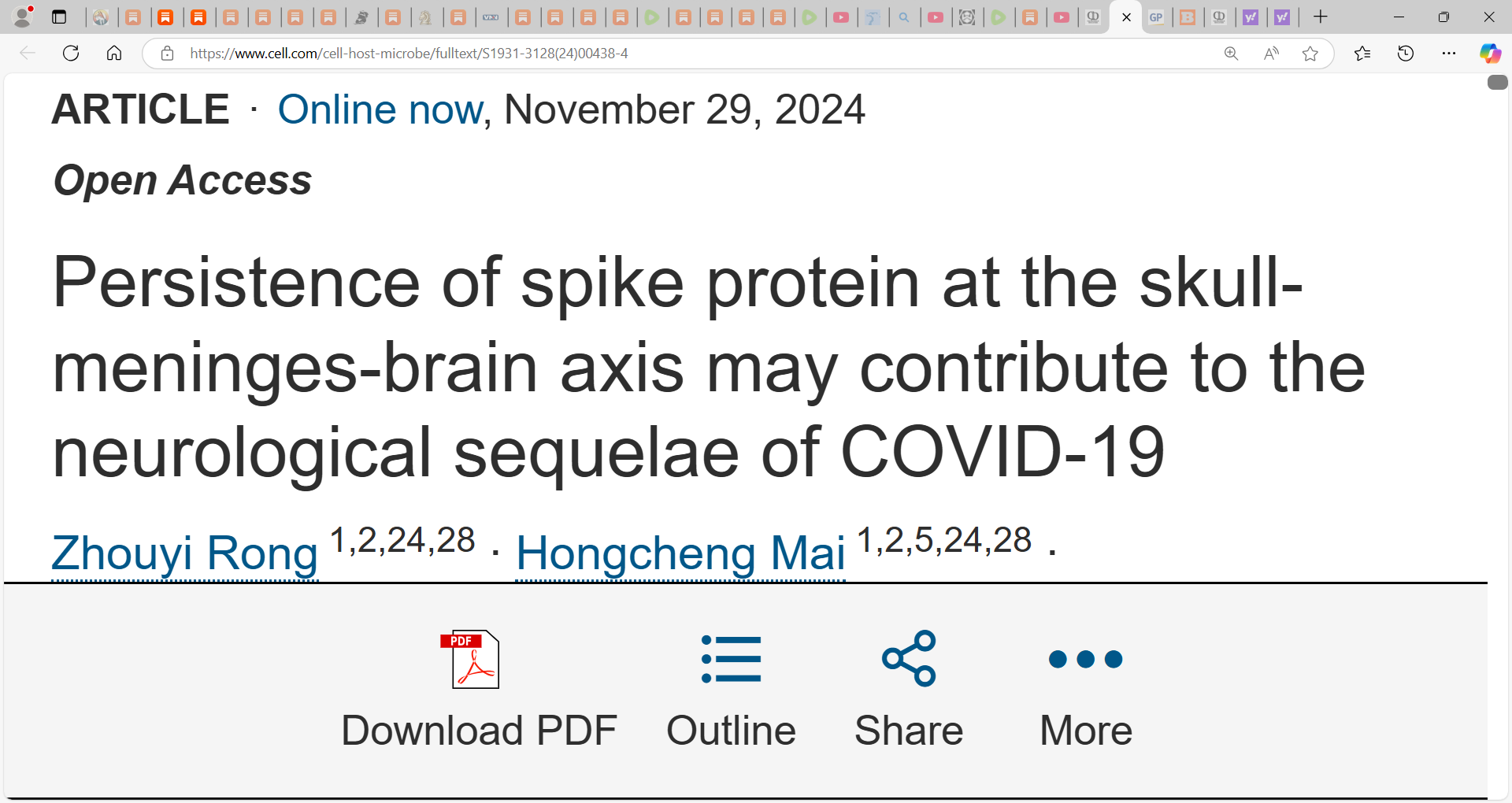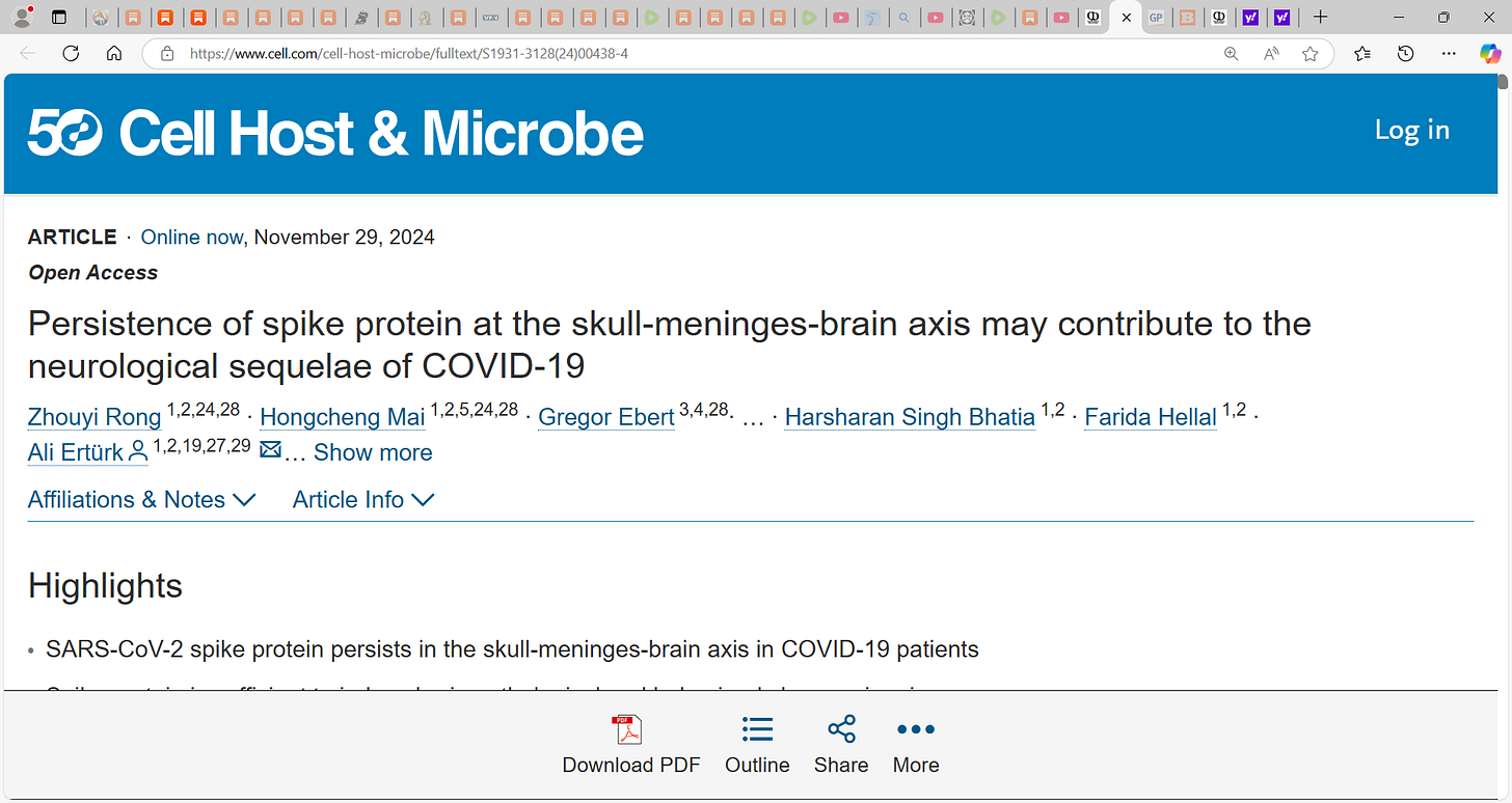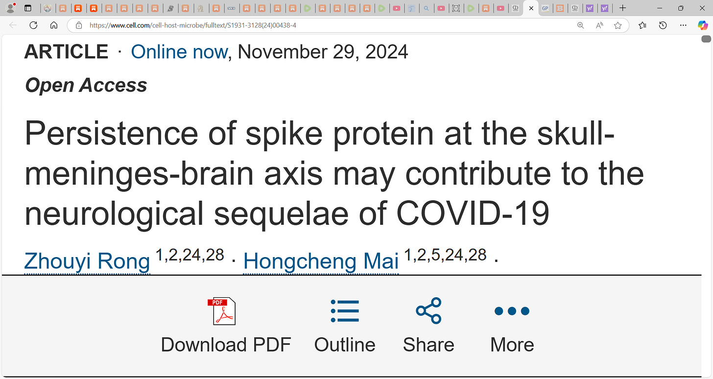 Study by Rong (Cell Host & Microbe) uncovers persistence of spike protein at the skull-meninges-brain axis potentially causing neurological sequelae of COVID; not we MUST extrapolate to mRNA vaccine