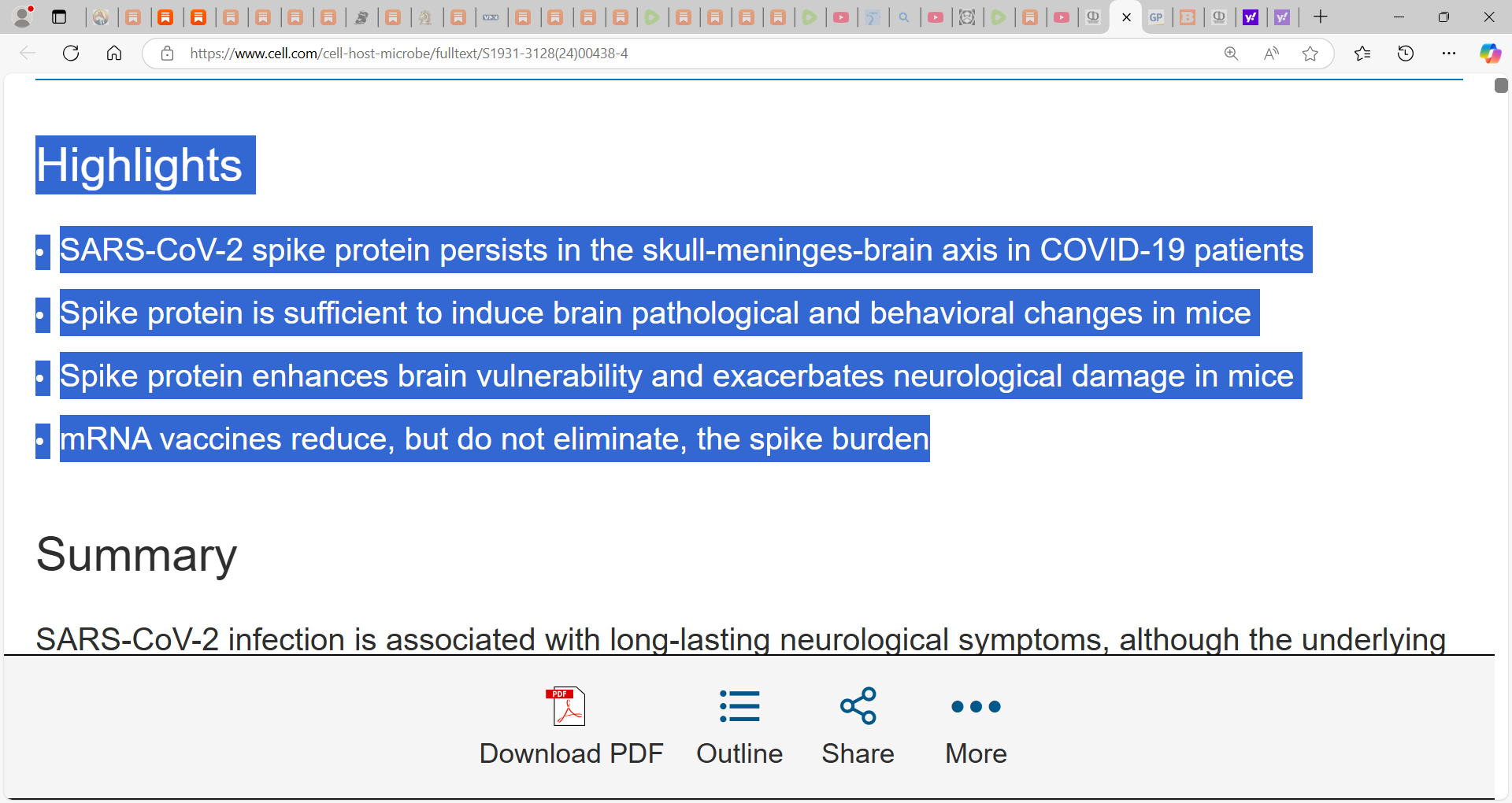 Researchers found spike protein (induced by mRNA vaccine or virus) is sufficient to induce brain pathological and behavioral changes in mice; neurodegeneration were elevated in the cerebrospinal fluid