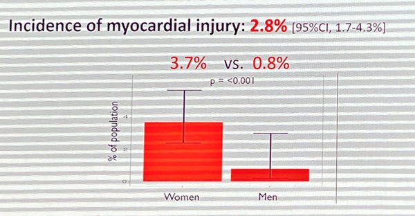 Myocardial lesions (injury) affect women more contrary to what is described in previous studies.