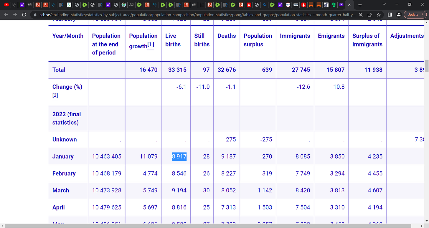 Sweden: why did live births drop by near 10% in Sweden in 2022 over 2021? What happened in 2021 in Sweden? Is it the mRNA technology based gene injection that was rolled out causing fertility decline?