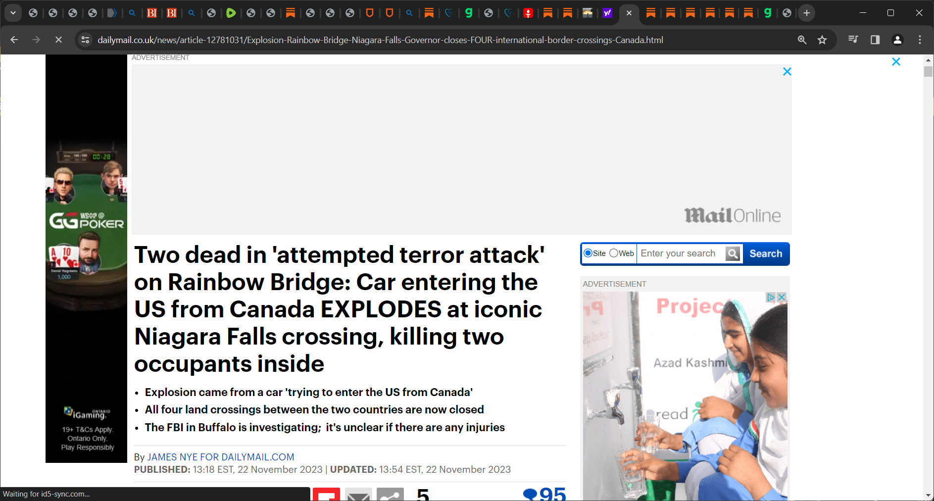 ‘A vehicle trying to enter the US from Canada has exploded on Rainbow Bridge at Niagara Falls, triggering an emergency response from the FBI Terrorism Task Force.