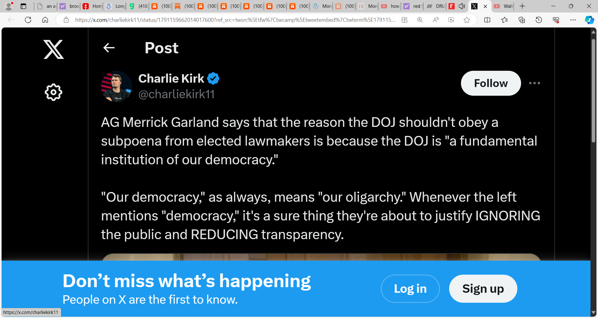You can see a recent interview about Garland with Owen Shroyer interviewing Chris Emery if you scroll down to the bottom.