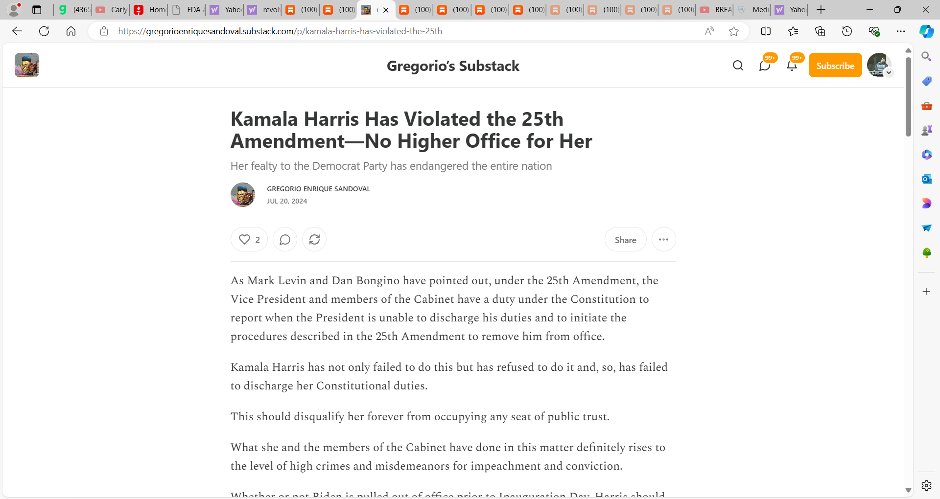 ‘Kamala Harris Has Violated the 25th Amendment—No Higher Office for Her (substack.com)