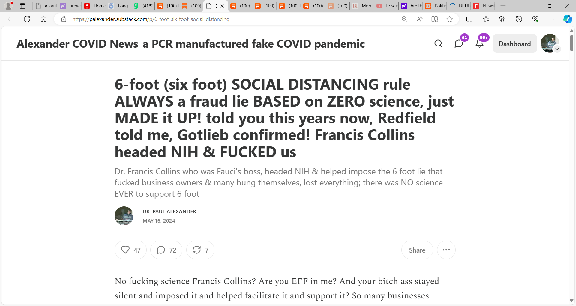 Gotlieb said it was made up, Fauci recently said same, now Francis Collins of NIH, the GUITAR man, under oath, says NO science, it was arbitrary. So what do we do with Collins? What punishment?
