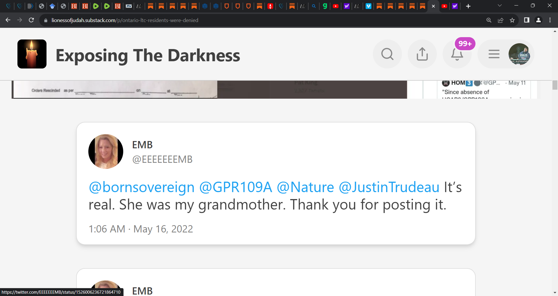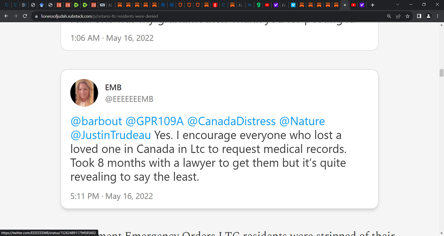 LIONESS OF JUDAH MINISTRY); excellent substack on the reality of what Canadians faced (and Americans, UK/British); Canadian long-term care homes were turned into extermination centers