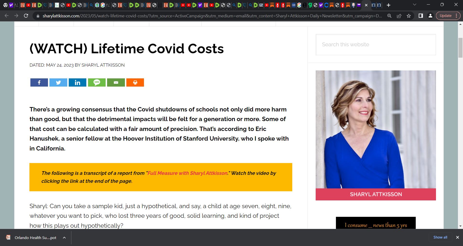 after a 7 or 8 year old today who experienced 3 years of lockdown lunacy; Eric Hanushek talks with Attkisson