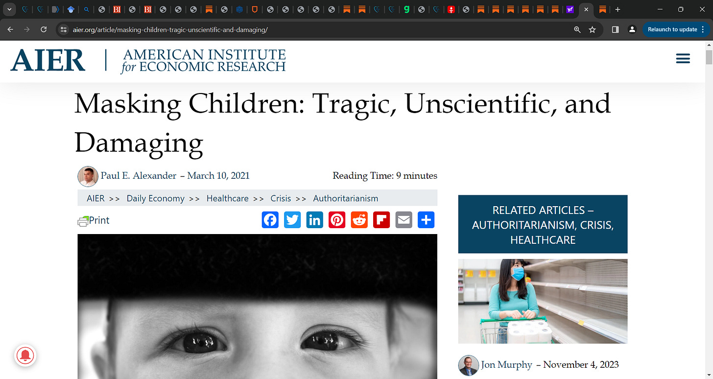 We are in uncharted territory and especially so with the possible implications for our children. Their immune systems are still being developed and we are forcing lockdowns, school closures, and masking on a developing child and we have no prior experience on the subsequent outcomes pertaining to children’s development, health, and well-being. These are matters too important to nonchalantly disregard. The consequences could be catastrophic and lifelong, especially for our children.