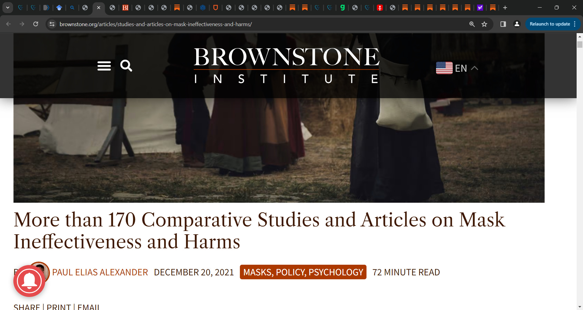 I present the masking ‘body of evidence’ below (n=167 studies and pieces of evidence), comprised of comparative effectiveness research as well as related evidence and high-level reporting. To date, the evidence has been stable and clear that masks do not work to control the virus and they can be harmful and especially to children.