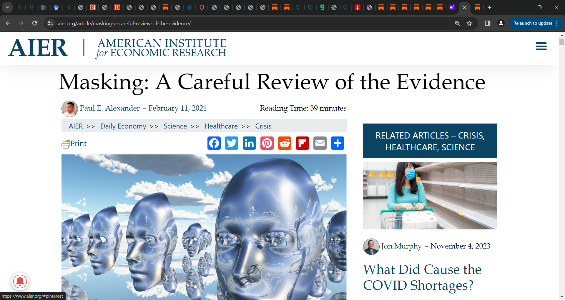 Back in August 2020, a survey by Pew indicated that 85% of Americans wore masks when in public all or most of the time. So, the public has been using masks extensively. We thus set the table in this review on the effectiveness of masking for Covid by asking, if these surgical and cloth masks are effective, why did incidence of the virus (or actual disease; and they’re not the same thing) escalate so rapidly despite widespread use? Why is there no evidence across US States and global nations showing that when use is mandated (or not mandated given the general uptake of masking by the public), this contributes to reduced viral transmission? Is there any such evidence?