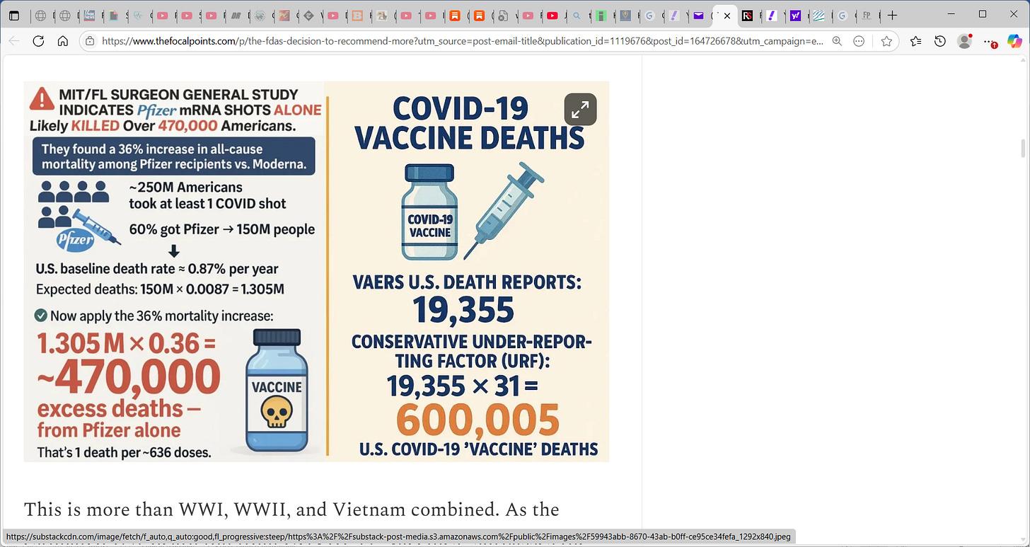 et al. and they should be damn ashamed, they are playing with lives, and they know it and took jobs in administration (after hammering Trump for years) IMO to block for big PHARMA and Susie Wiles. I cannot think POTUS Trump knows this is what is happening. Trump again is being subverted and misled, wrongfully as he cannot be in agreement with this, and RFK Jr. needs to fire these clowns and right the ship and go full throttle. This cannot be a game, and the writing must be clear when FDA puts out information. The writing especially the recent NEJM piece was pure hogwash drivel bull! I still trust RFK Jr. to steady the ship and do the right thing.