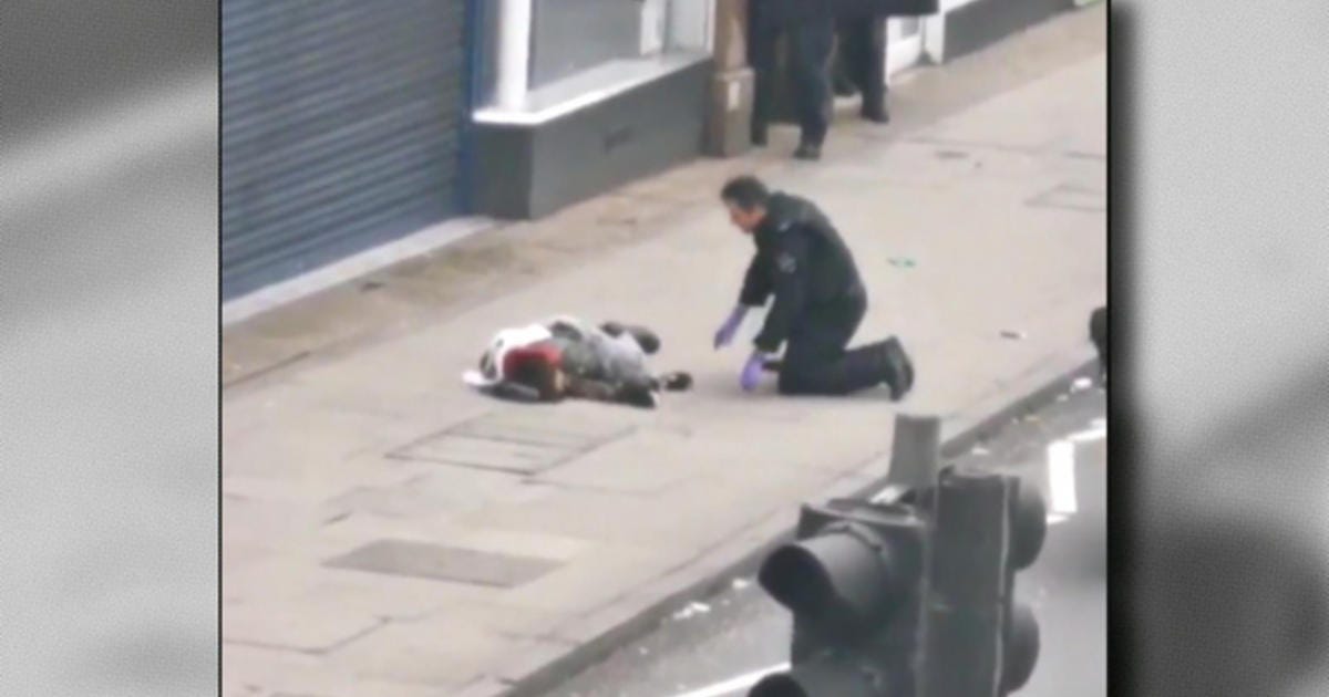 The islamist jihadist feral 6th century medieval beast in UK, attacking now UK Brit people with knives & with hammers & axes shouting "allah akhbar"; these are 'nice' 'peaceful' people NOW Harris &