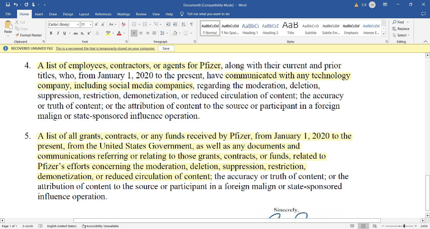 For sure Jordan is interested in former FDA Commissioner Scott Gottlieb and his influence peddling with Twitter to mute messaging on natural immunity as he was pushing mRNA as a Board member of Pfizer on national television.