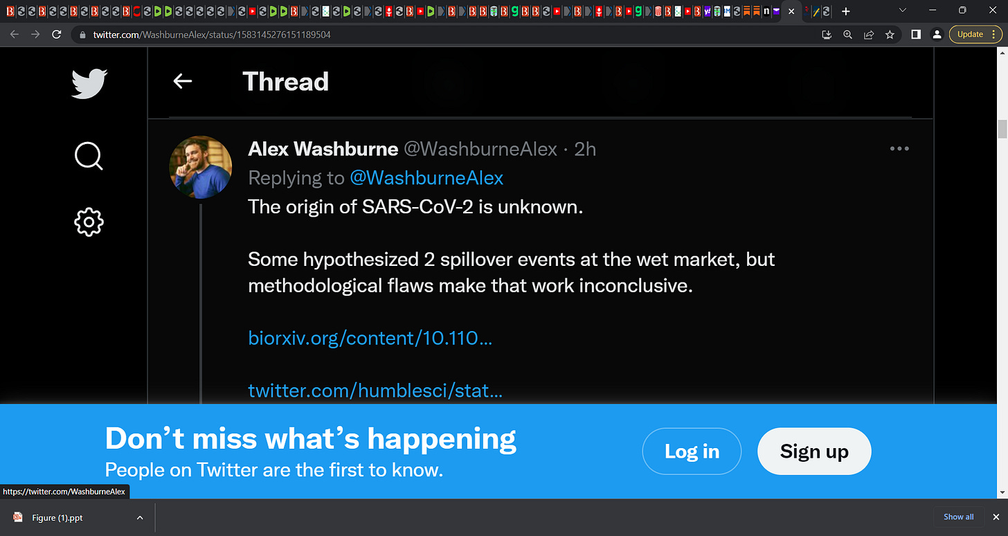 COVID was created in the lab via gain-of-function research stitching together viruses or parts of virus to create chimera viruses, and Fauci, Francis Collins, Baric, Daszak etc., have a direct role. We are to figure it out fully and hold everyone of them to account if shown to have been reckless and irresponsible behavior that threatened the world.