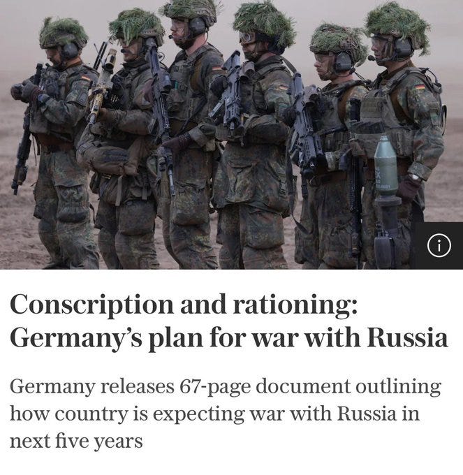 This week, Germany was added to that list and they told their citizens to plan for a Russian attack by rationing food and preparing makeshift bunkers in subways.’