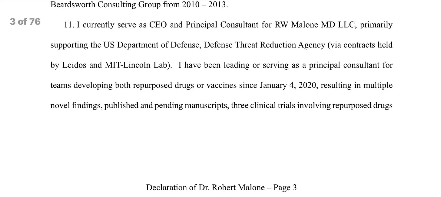“I have historically worked with people who have been truly Deep State intelligence community. I have decades of experience in biodefense. I have been deep in the belly of the beast. I have won literally billions of dollars for my clients in grants and contracts. I have managed hundreds of millions of dollars in grants and contracts in the vaccine space.” 17