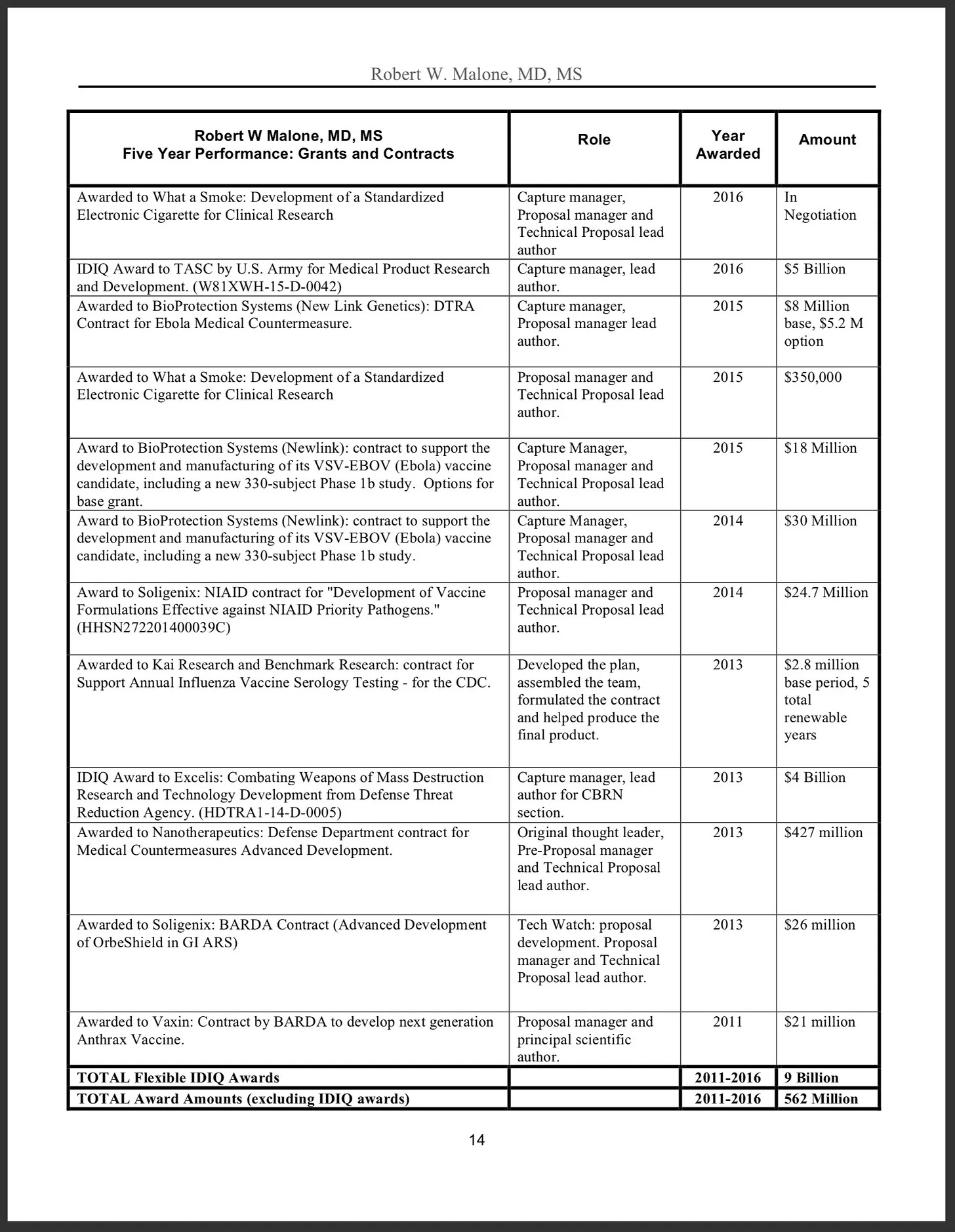 Malone worked under Fauci at the National Institute of Allergies and Infectious Diseases (NIAID). He has a long record in the bioweapons complex (10 billion dollars in grants 2012-2017 16):