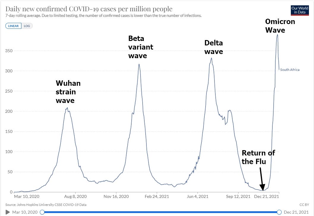Experts suggest that in such situations, the return of a formally displaced virus signals the dominance of the prior displacing one is over, and signals the end. In our case, can we say that the return of influenza will mark the end of the COVID officially? Let us wait and see when flu returns to the US, Canada, UK etc. I am going to read lots on this to better understand for it is fascinating and may well explain what we encountered.
