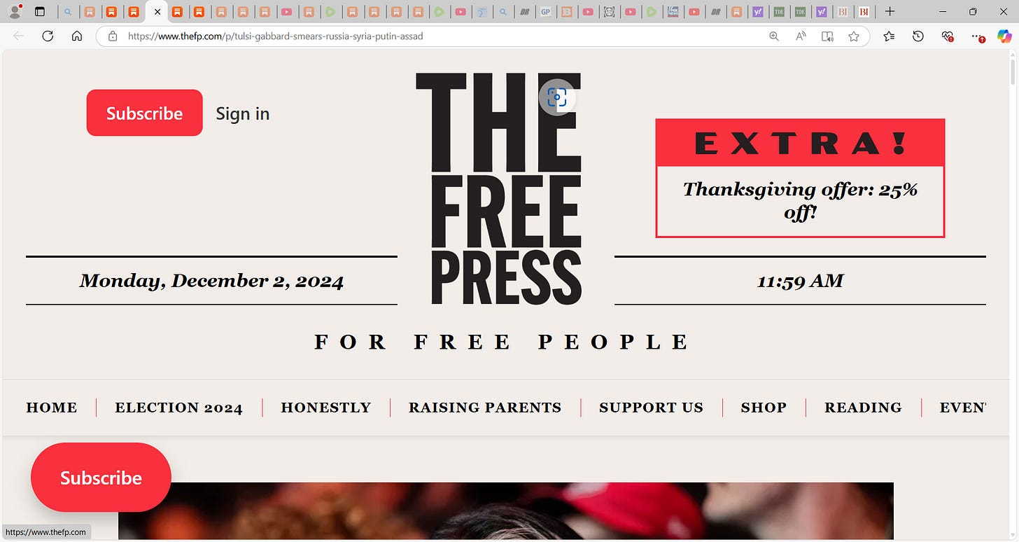 So it’s both unsavory and ineffective to imply that Gabbard is a Russian asset. And unlike some of Trump’s other controversial cabinet picks, GOP insiders tell me that senators would like to find a reason to approve Gabbard’s nomination. As one Republican Senate staffer told The Free Press, “No one is looking to get into a fight right now over this; there are too many other bigger fish to fry.”