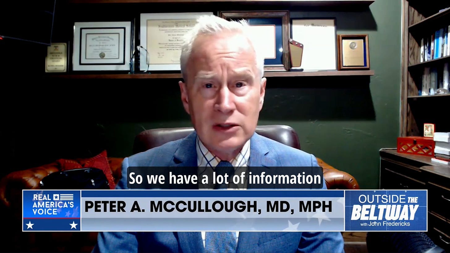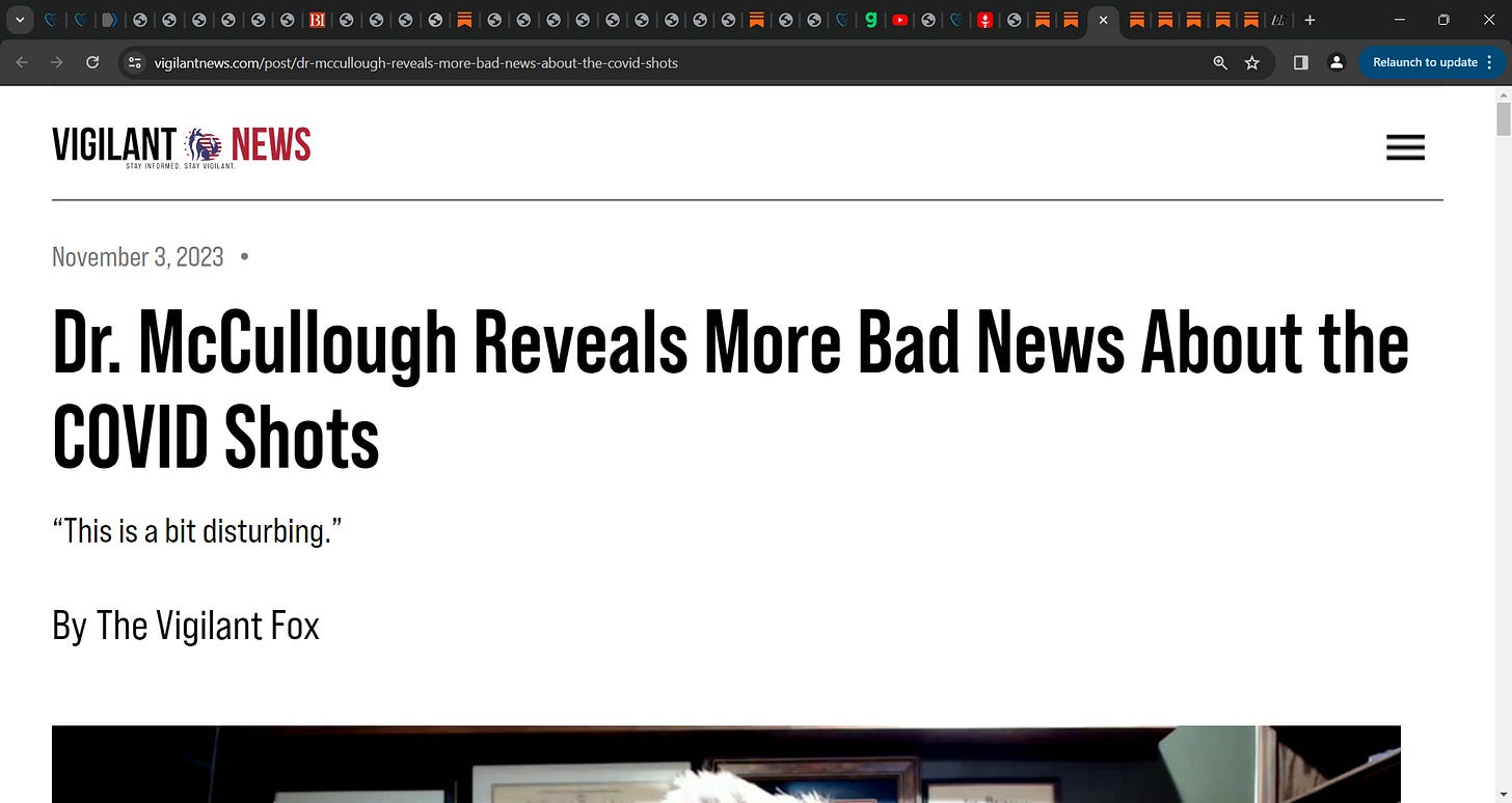 The Vigilant Fox updates us on devastating effects of the COVID mRNA technology vaccine based on McCullough: "Dr. McCullough Reveals More Bad News About the COVID Shots, “This is a bit disturbing.”