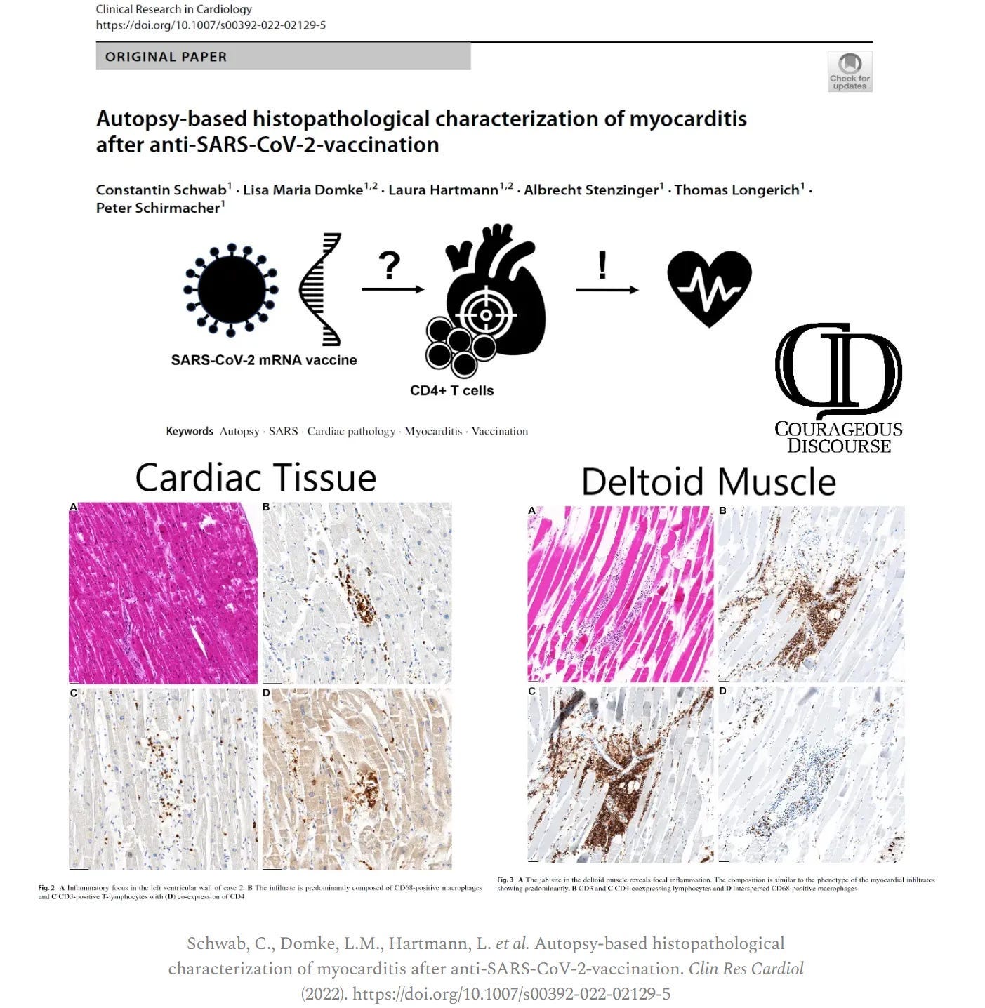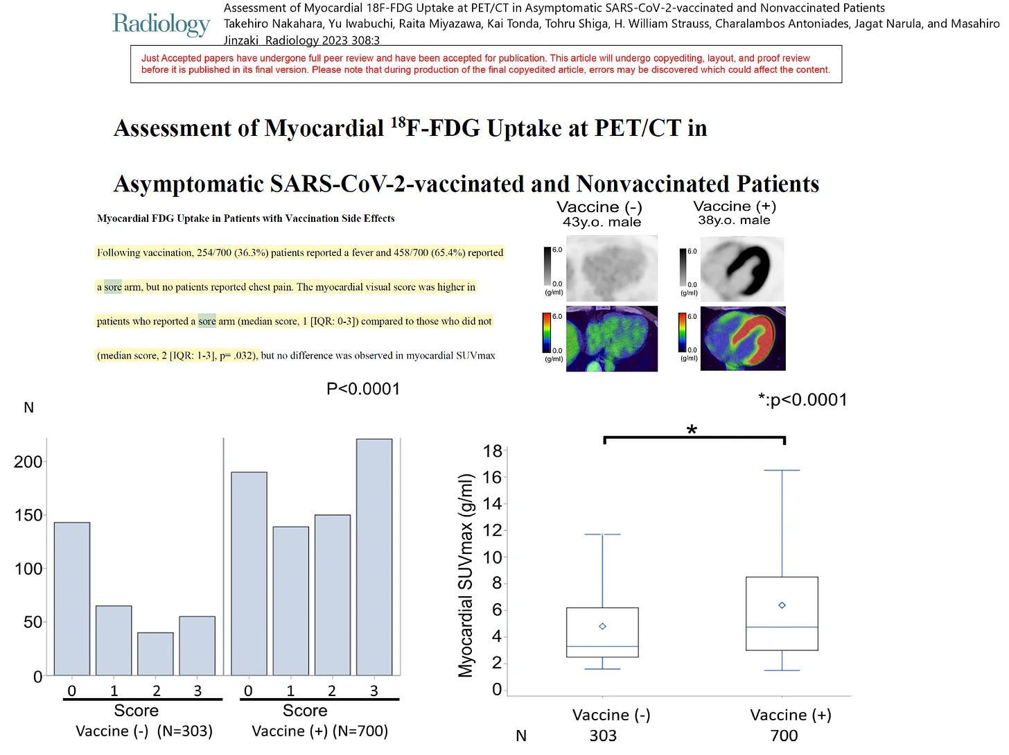 In Dr. McCullough’s Substack post about this study, he stated, “Of interest among those with a sore arm after the shot, there were more striking differences in the heart scan, consistent with the inflammatory changes seen in the arm and the heart at autopsy by Schwab et al (and others).”