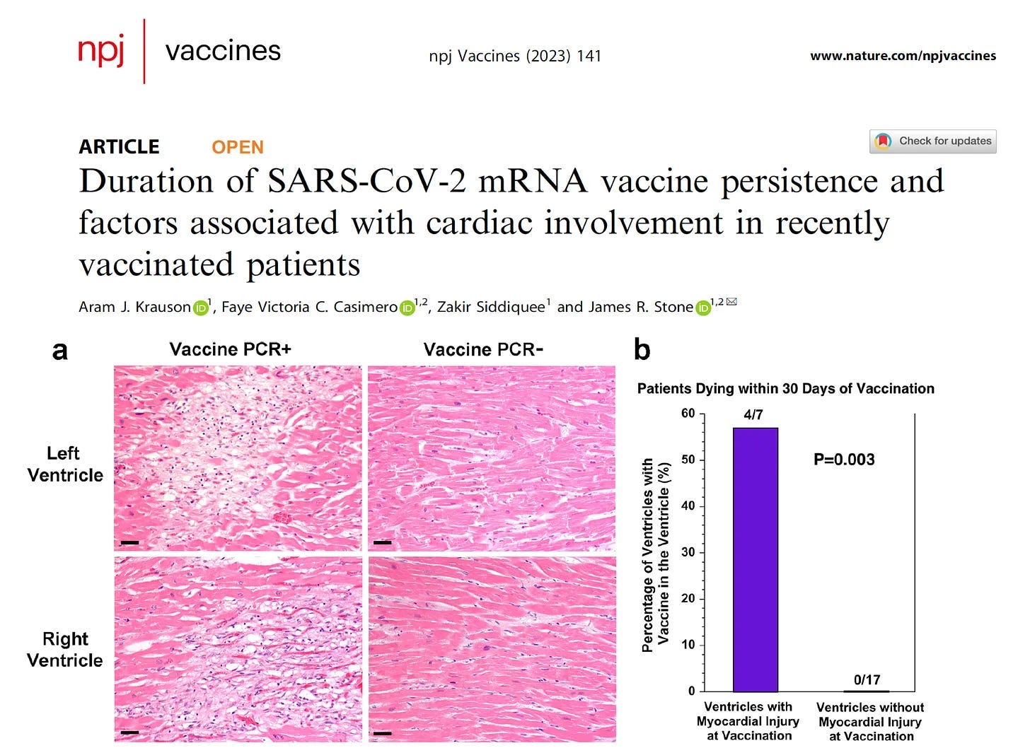Dr. McCullough mentioned a study from Krauson and colleagues from Harvard, which found mRNA stuck in the heart in people who died following COVID-19 injection.