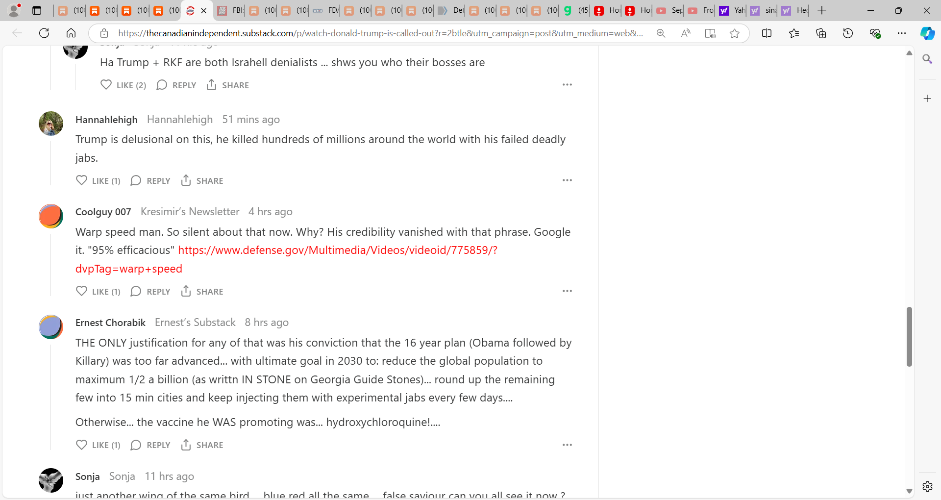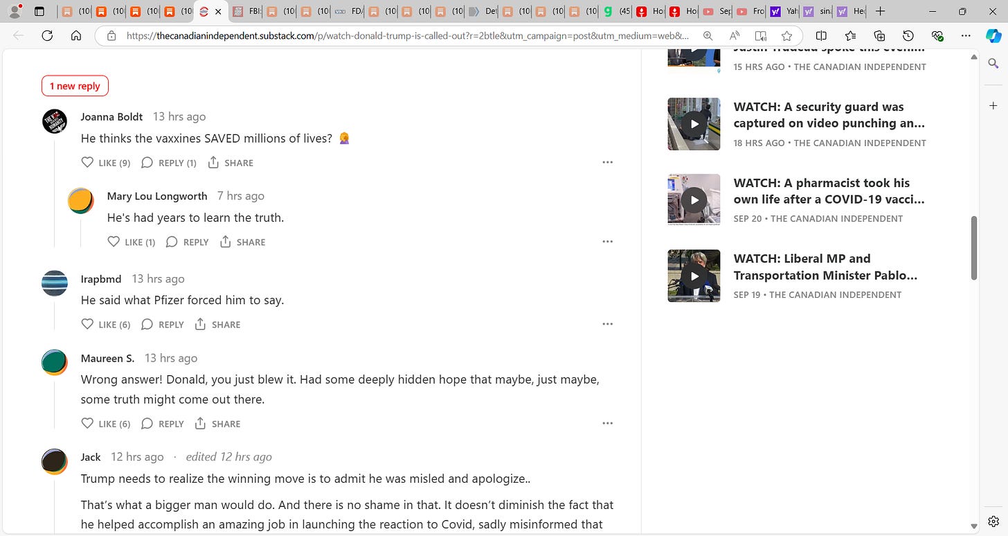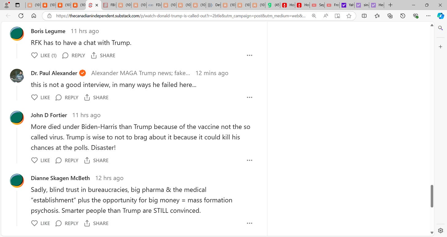 This was a failed interview on OWS and the Malone et al. gene-based technology vaccine that killed and I embed some of the comments and you can see what Americans think…I disagree with what Trump said here completely. He was wrong! It is time he stood up and apologizes and admits he was misled, was misguided, WRONG, will do all he can to make USA ‘whole’ and to punish the wrongdoers in the Malone et al. gene-based mRNA vaccine and the OWS fraud using a fraud fake PCR-manufactured non-pandemic.
