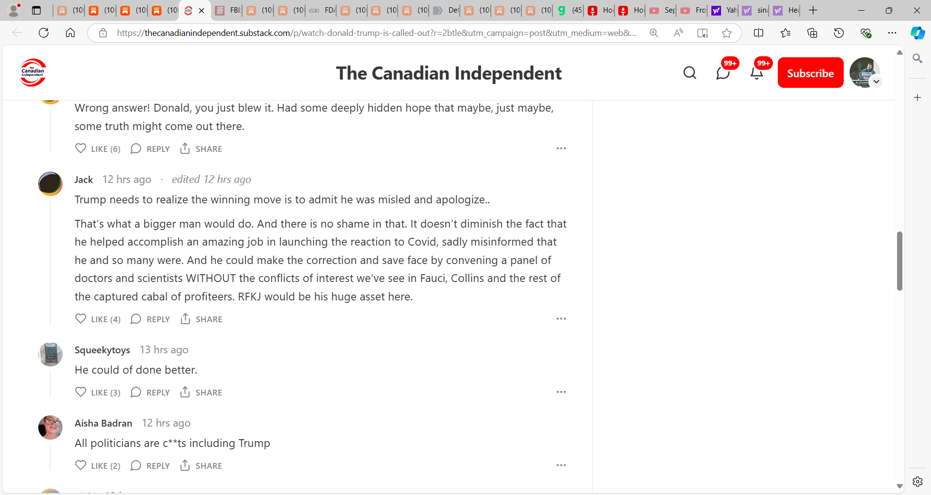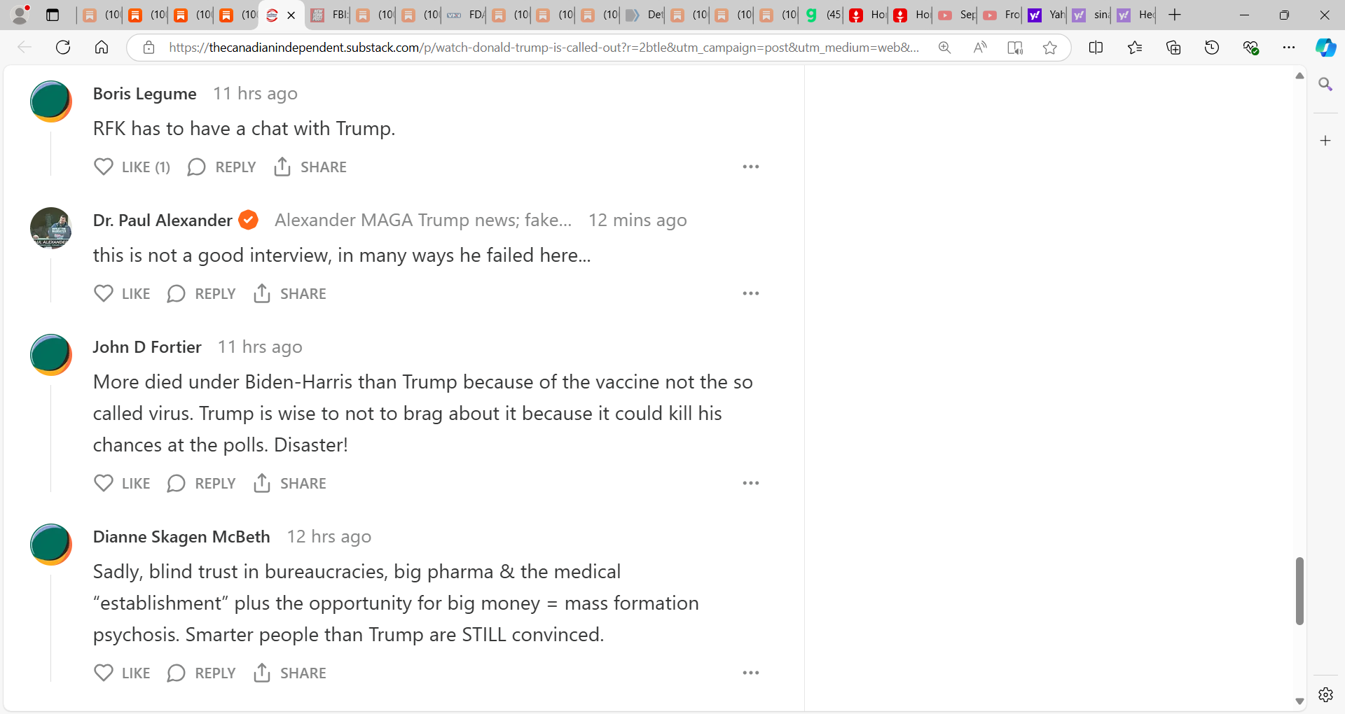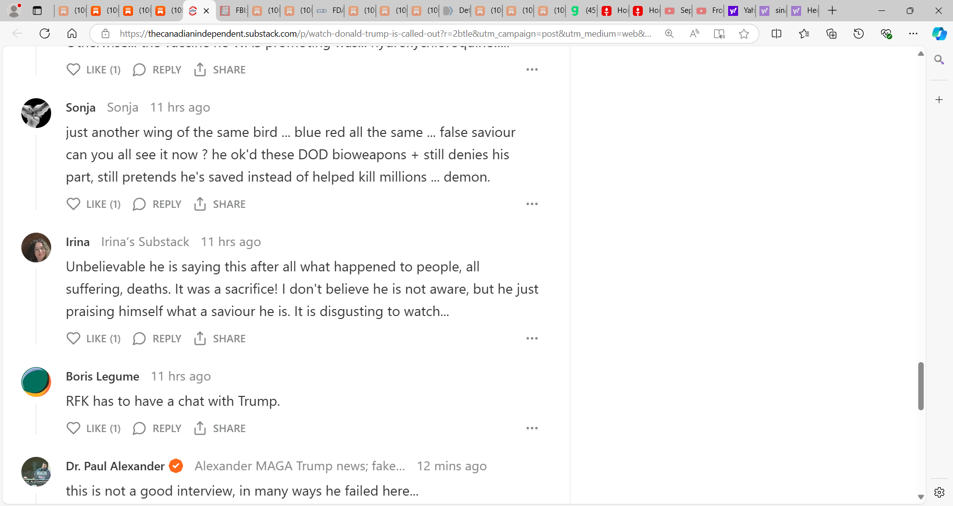 This was a failed interview on OWS and the Malone et al. gene-based technology vaccine that killed and I embed some of the comments and you can see what Americans think…I disagree with what Trump said here completely. He was wrong! It is time he stood up and apologizes and admits he was misled, was misguided, WRONG, will do all he can to make USA ‘whole’ and to punish the wrongdoers in the Malone et al. gene-based mRNA vaccine and the OWS fraud using a fraud fake PCR-manufactured non-pandemic.