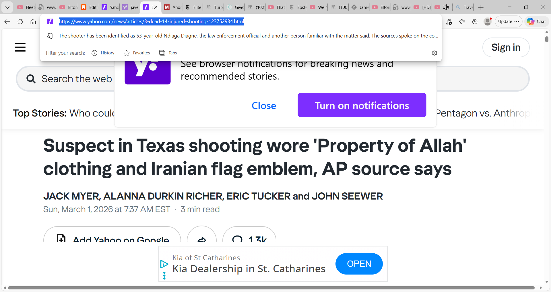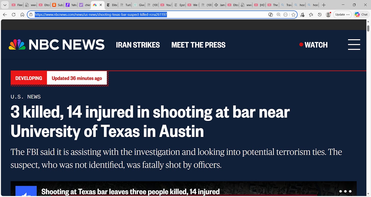 This could be a terrorist attack on US citizens in Texas by a lone person but terrorism all the same & linked to US attack on Iran? FBI is warning etc. & we must be very careful now for sympathizers.