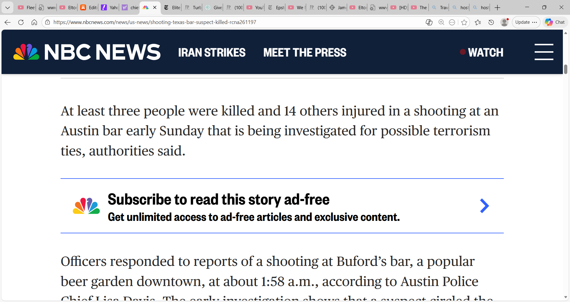 The FBI said it is assisting with the investigation and looking into potential terrorism ties. The suspect, who was not identified, was fatally shot by officers. 3 killed, 14 injured in shooting at bar near University of Texas in Austin