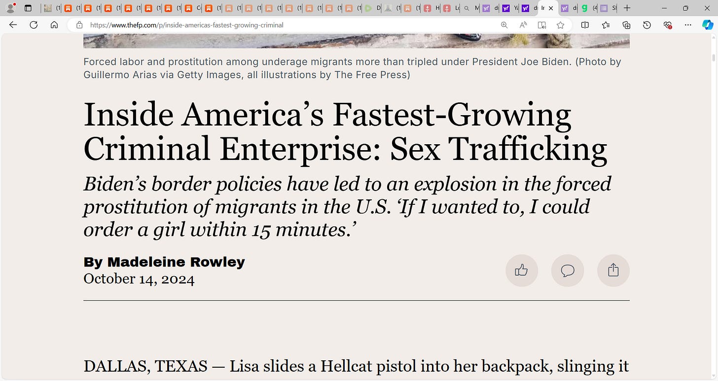 This is a grave situation where girls, young women are raped, sex trafficked, all the way in Darien Gap, inside USA, due to the disaster at the border breakdown and breach due to Harris and Biden,