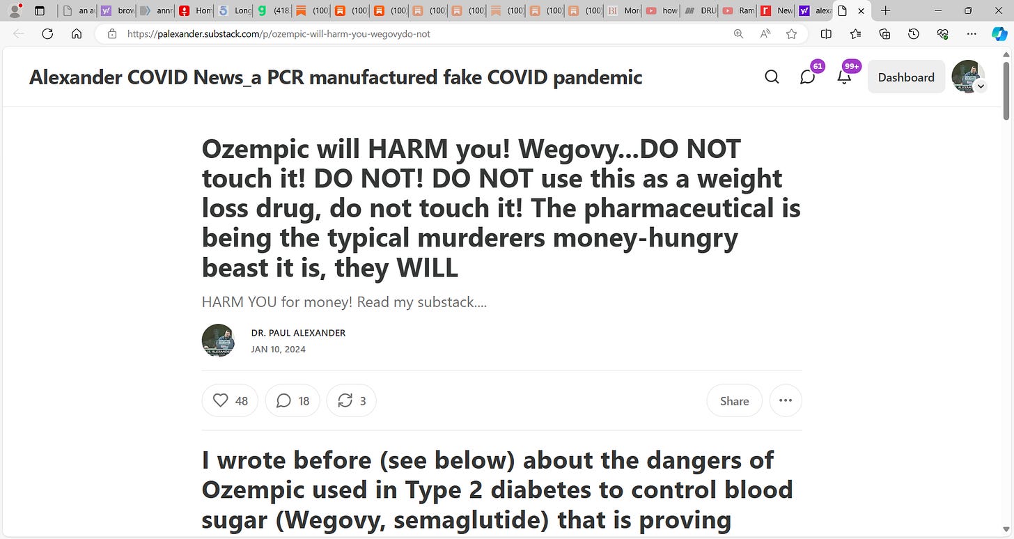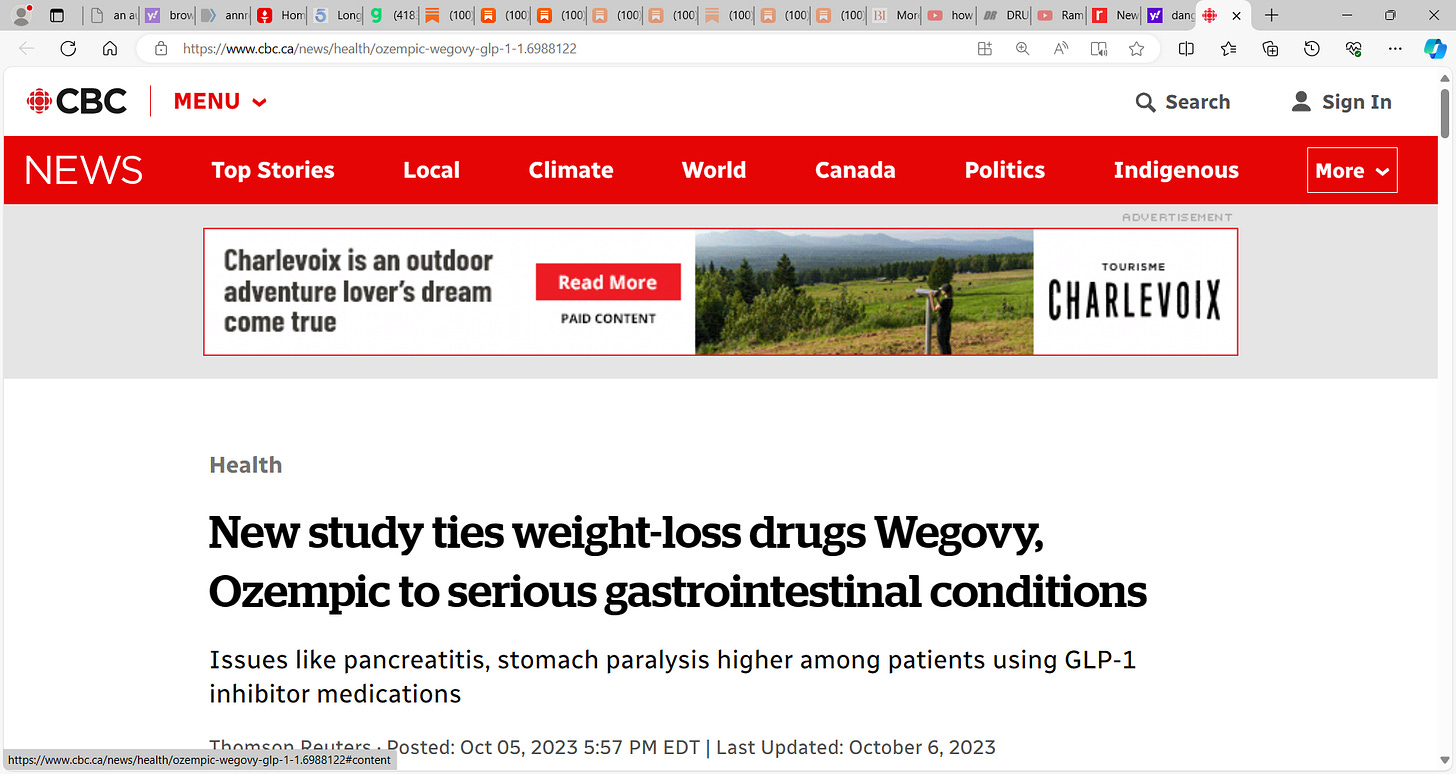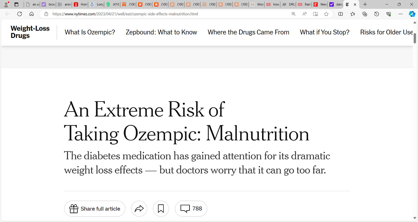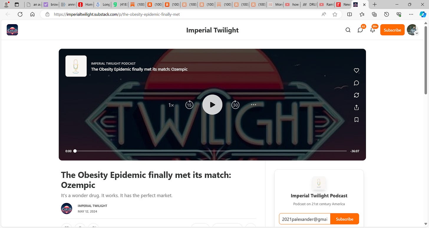 This is a very dangerous substack 'Imperial Twilight' for it advances OZEMPIC using title "The Obesity Epidemic finally met its match: Ozempic It's a wonder drug. It works. It has the perfect market."