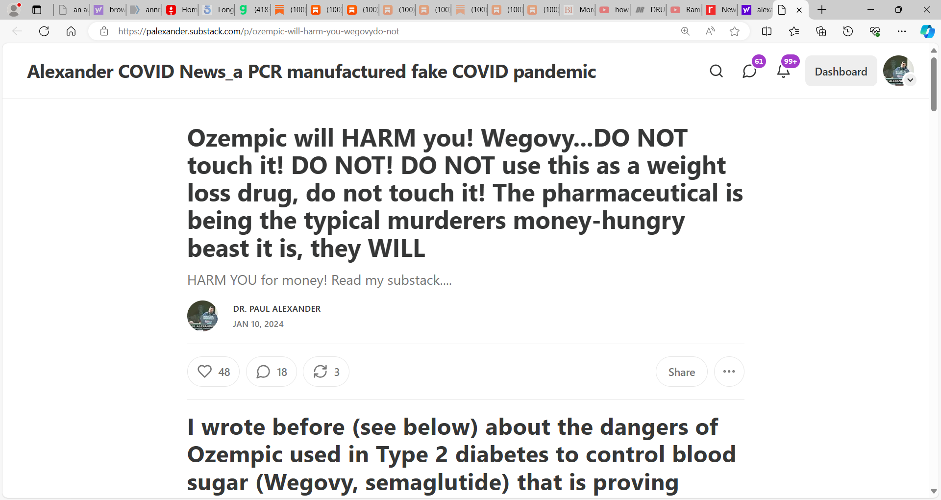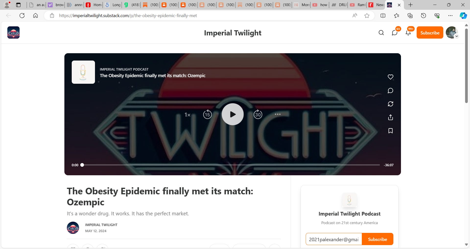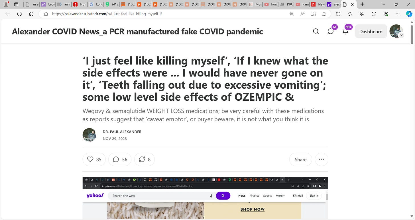 This is a very dangerous substack 'Imperial Twilight' for it advances OZEMPIC using title "The Obesity Epidemic finally met its match: Ozempic It's a wonder drug. It works. It has the perfect market."