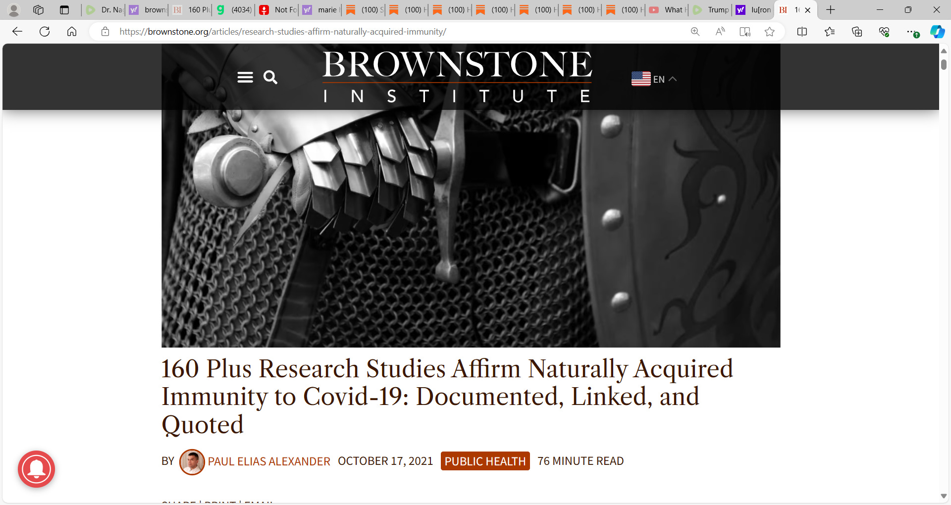 The Brownstone Institute previously documented 30 studies on natural immunity as it relates to Covid-19.