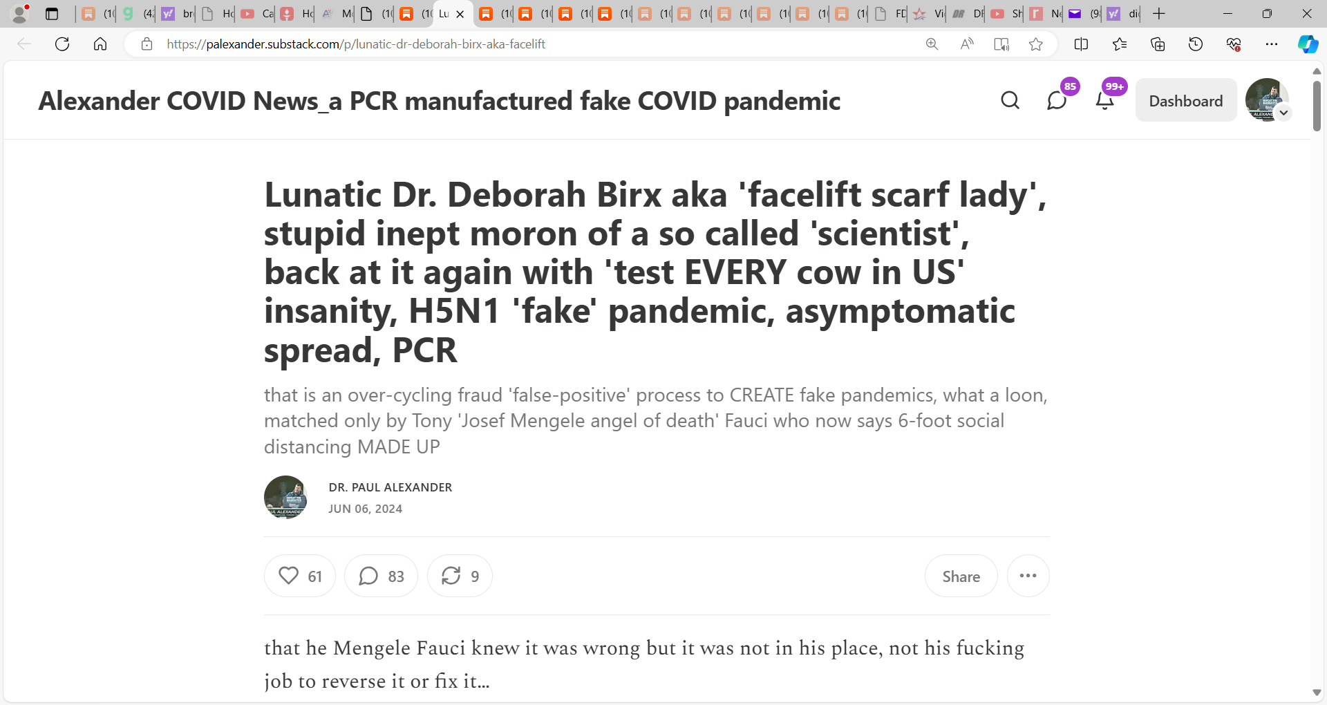You know when someone is so very stupid, so inane and vacuous that they become dangerous to the society by the nonsense they spew, well, Birx is one of those. Highly irrelevant, she just will not shut up. Dangerous. Specious. Unsound. And what I find fascinating is this lady can look at herself daily knowing that every single thing she said in COVID was wrong and actually caused harms. Her and her lockdown lunacy.