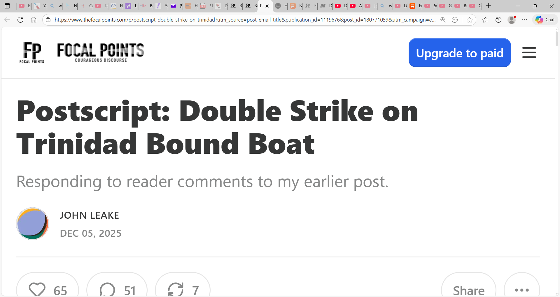 To double-tap or not to tap? Which is it? John Leake put this excellent stack out on the double-strike on the 'narco' boat off Trinidad Caribbean & he raises serious questions re Hegseth & this