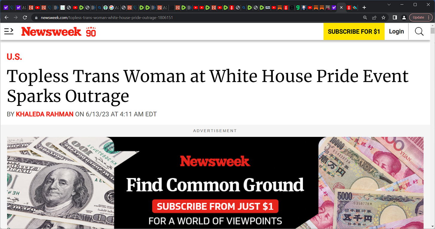 'Topless Trans Woman at White House Pride Event Sparks Outrage'; you damn right this is outrageous, this is filthy freakish sodom madness, this is what Biden et al. wants America to become, a cesspit